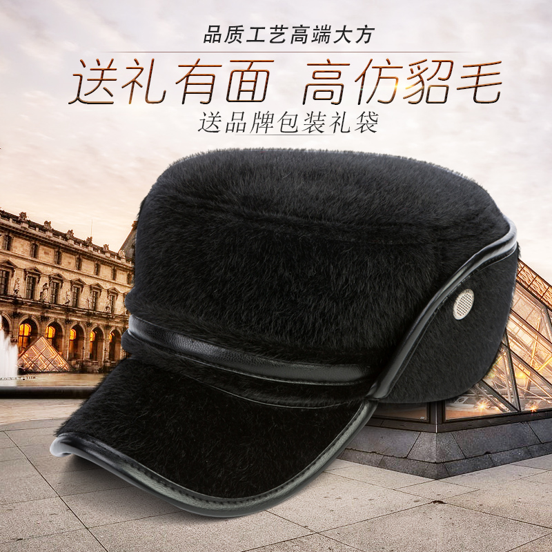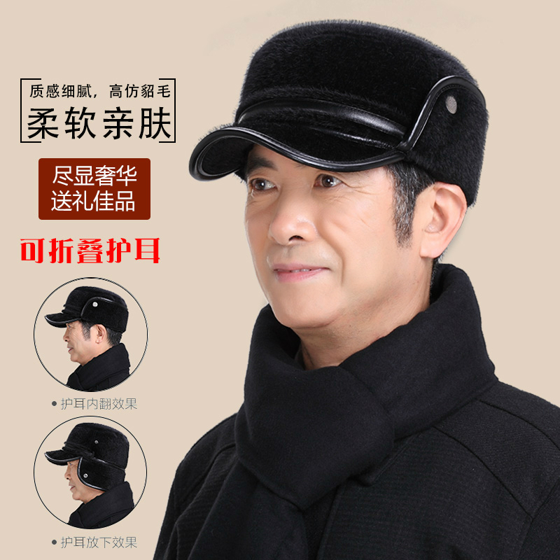 冬季中老年帽子男冬天仿貂毛皮草爸爸老头帽加绒护耳老人老年人帽