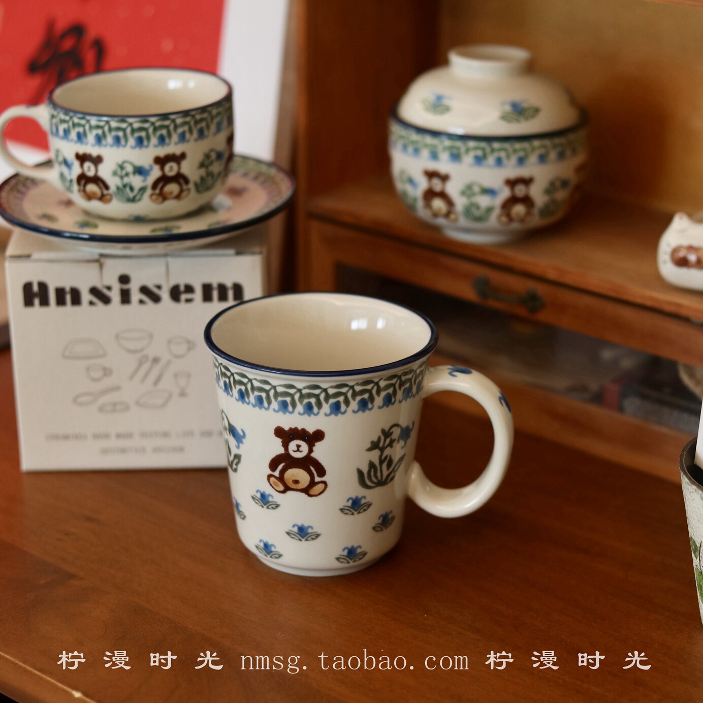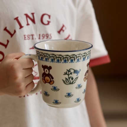Vintage中古风可爱复古铃兰小熊陶瓷马克杯早餐杯大容量家用水杯