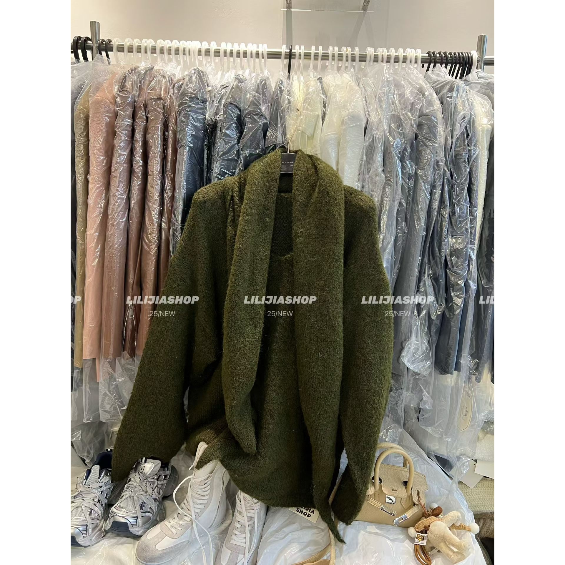 2025秋冬新款韩版时尚百搭显瘦宽松休闲V领套头毛衣女中长款上衣
