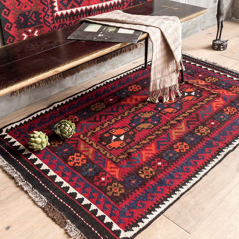 阿富汗进口手工编织羊毛红色kilim波西米亚民族风客厅挂毯地毯垫