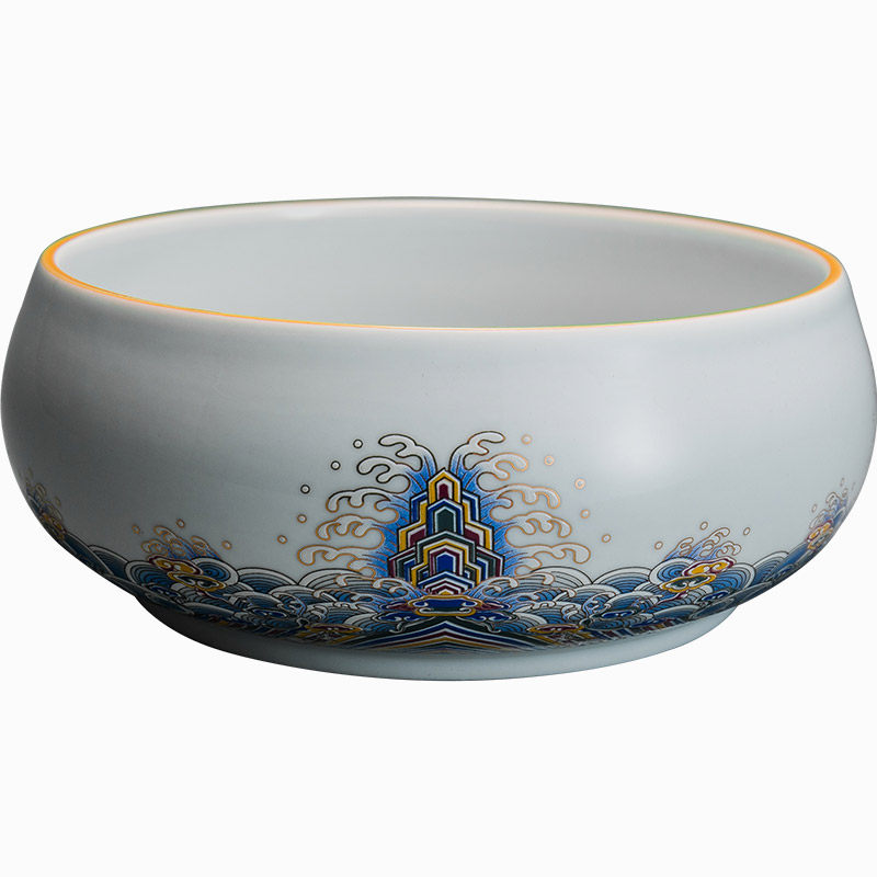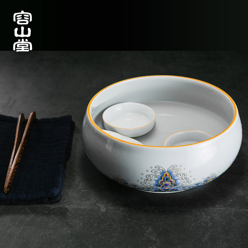 容山堂珐琅彩绘茶洗水洗水盂茶渣桶杯洗宫廷大号白瓷功夫茶具配件