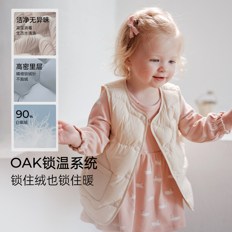 Oak Family秋冬宝宝羽绒马甲背心内胆儿童男童女童轻薄羽绒服外套