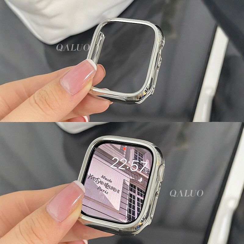 QALUO电镀保护壳半包适用apple watchS11/S10代iwatch9苹果手表se/8/7/6/5/4硬壳套40/41/42/46mm男女Ultra