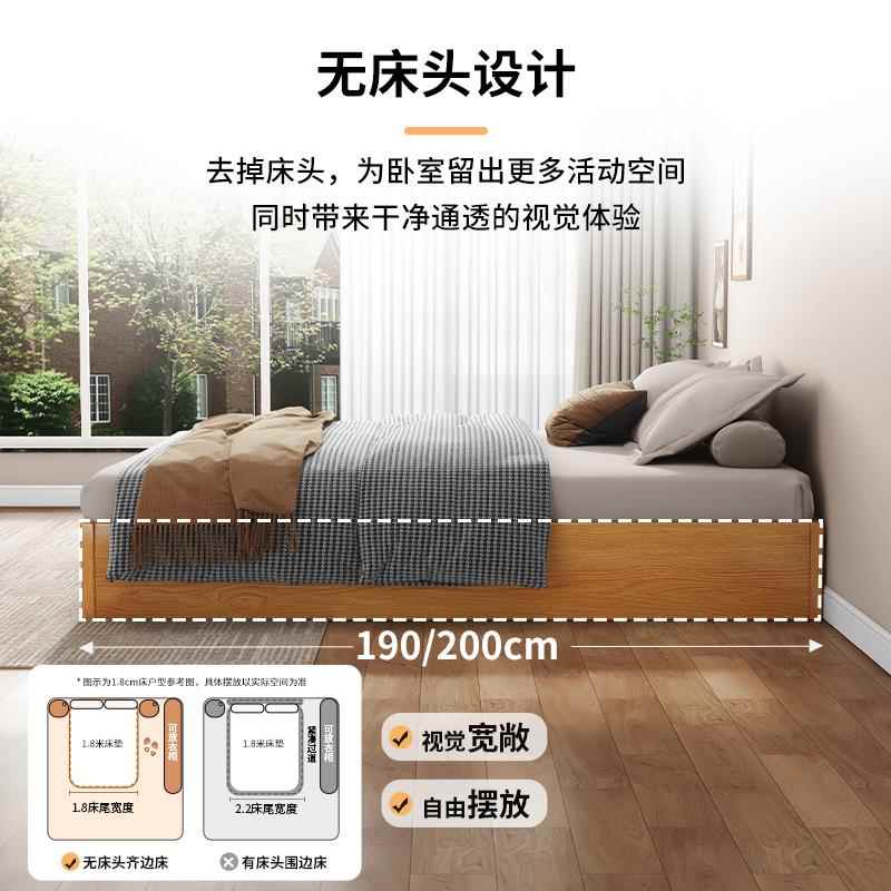 实木榻榻米床架无床头排骨架矮床现代简约家用小户型无床头实木床