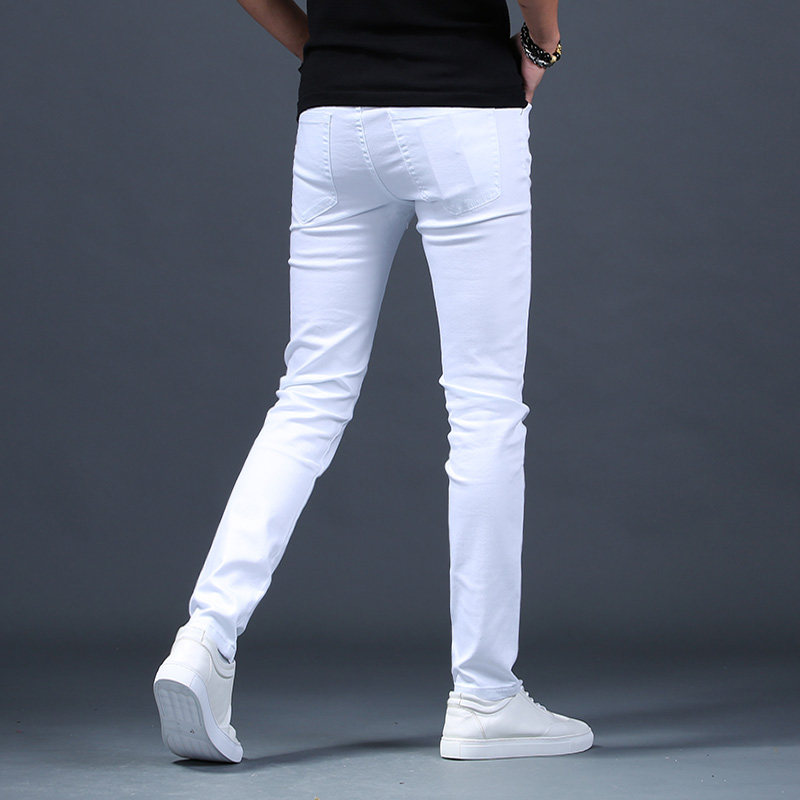 男士白色刺绣破洞牛仔裤男潮牌韩版修身潮流休闲小脚长裤宽松夏季