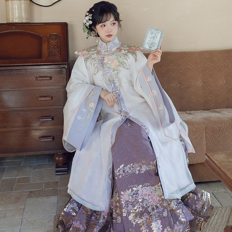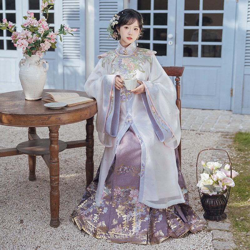 桔屿汉服女明制【紫雾青藤】云肩对襟大袖衫织金仿妆花马面裙春夏