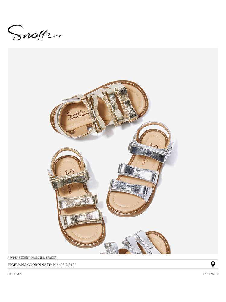 蝴蝶结露趾女童凉鞋2025夏季新款