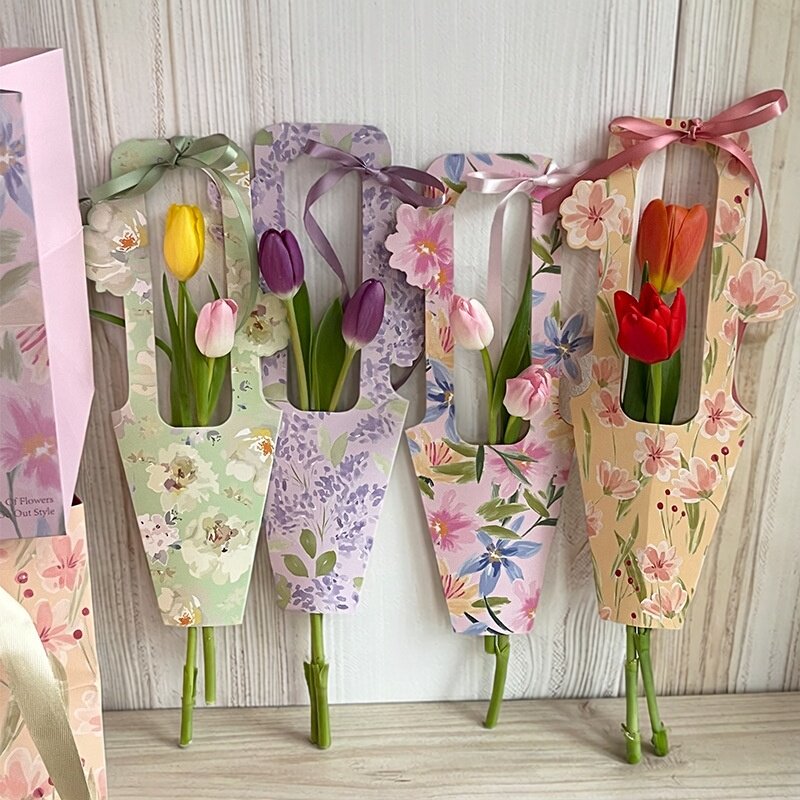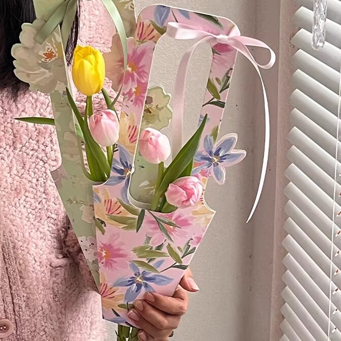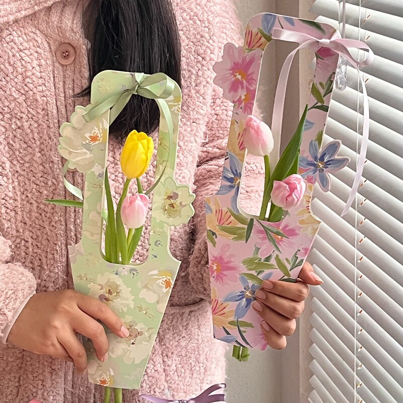三八女神节ins风单枝手提花盒礼盒单支鲜花花束包装盒手工diy材料