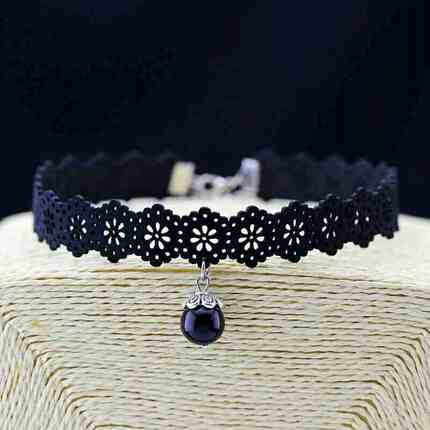 皮质宽大短款锁骨链女颈链简约颈带脖链韩国黑色蕾丝项圈玛瑙朋克