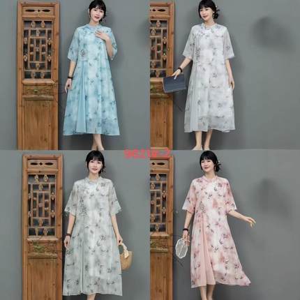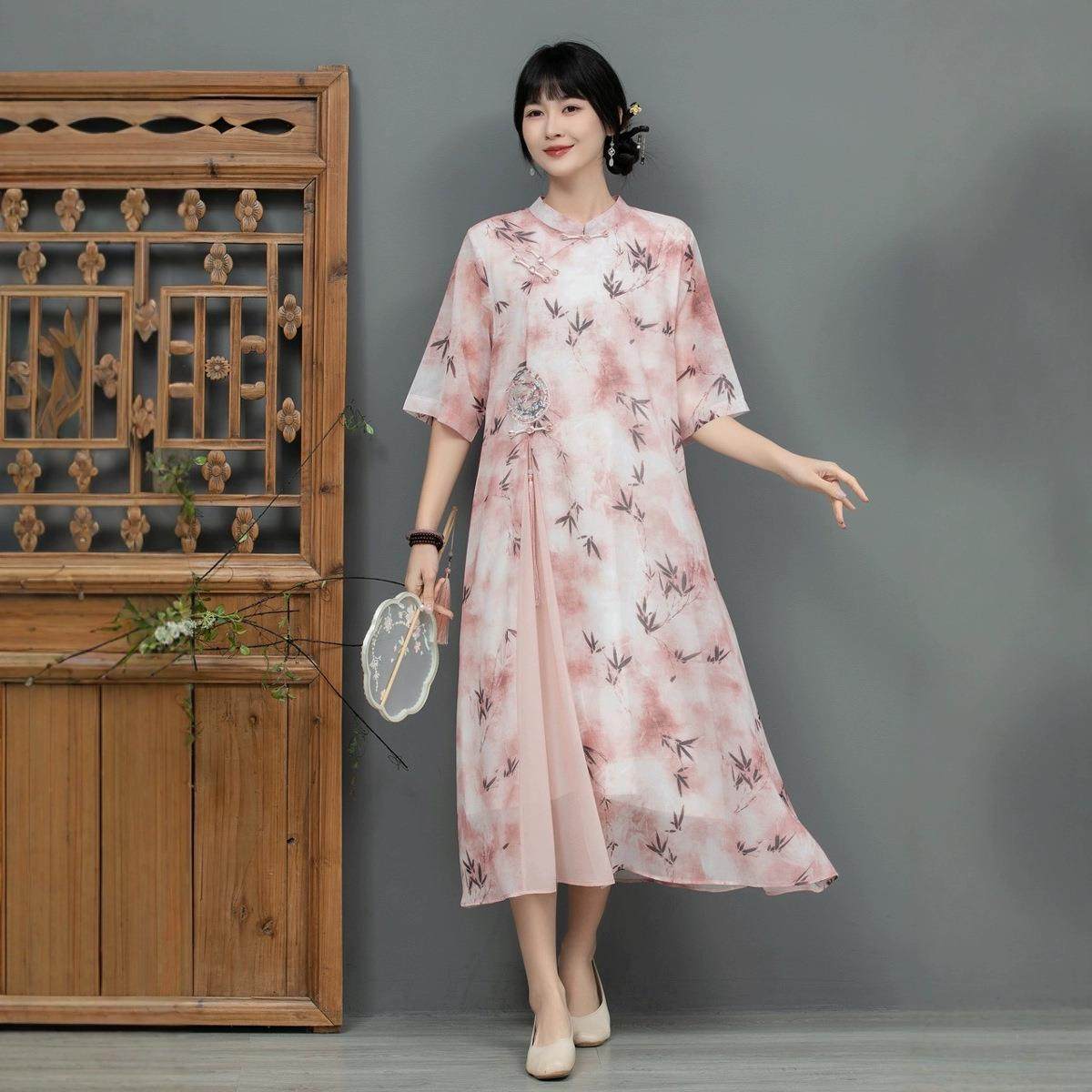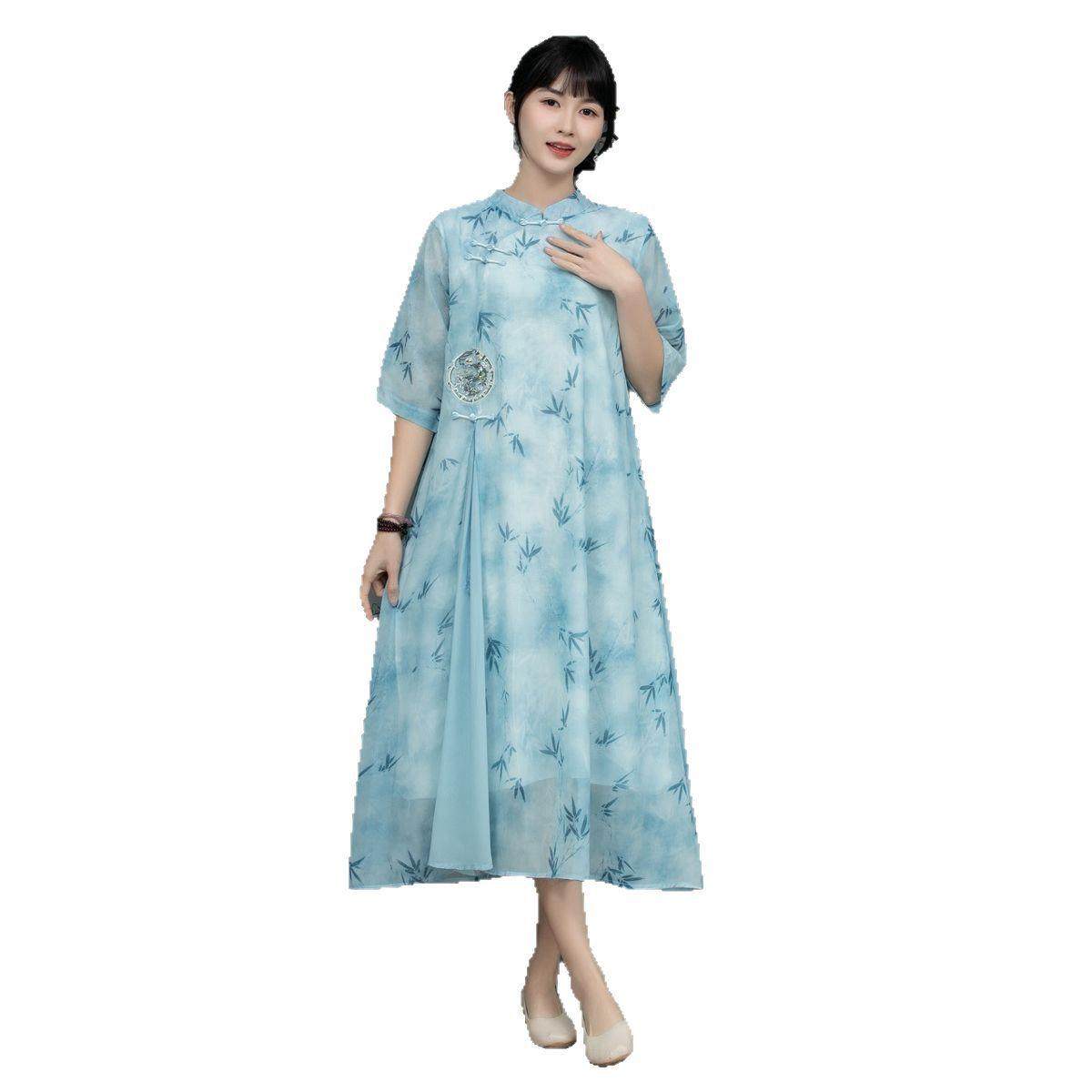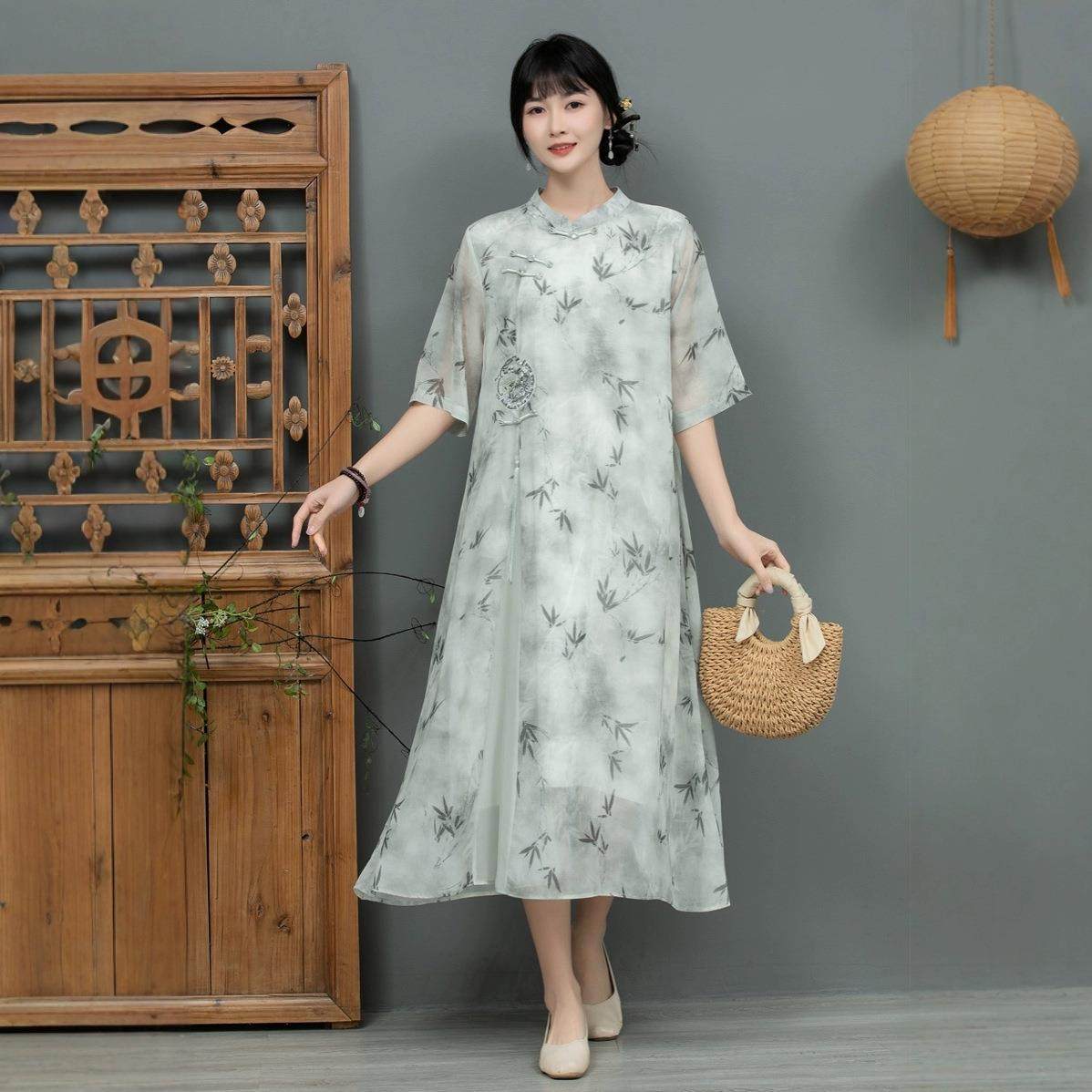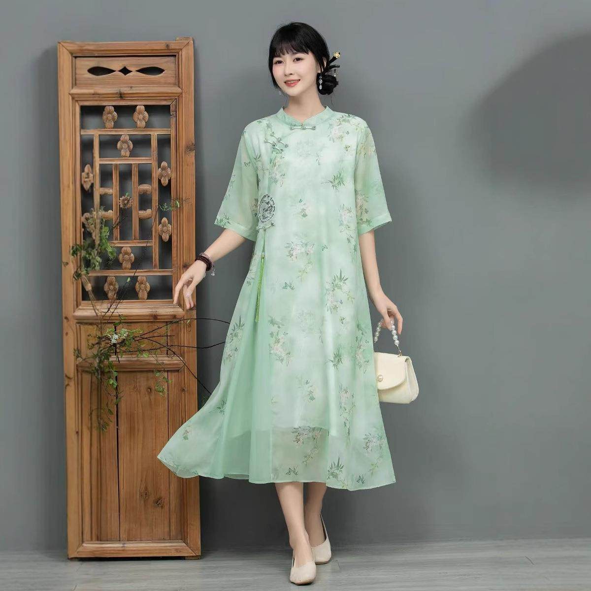 大码女装新中式旗袍连衣裙女中国风改良裙子夏季气质减龄裙子复古