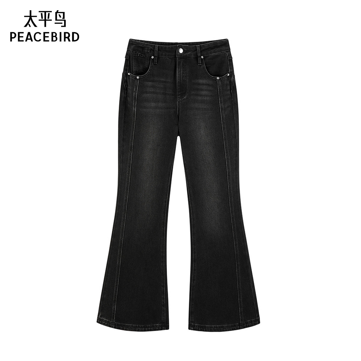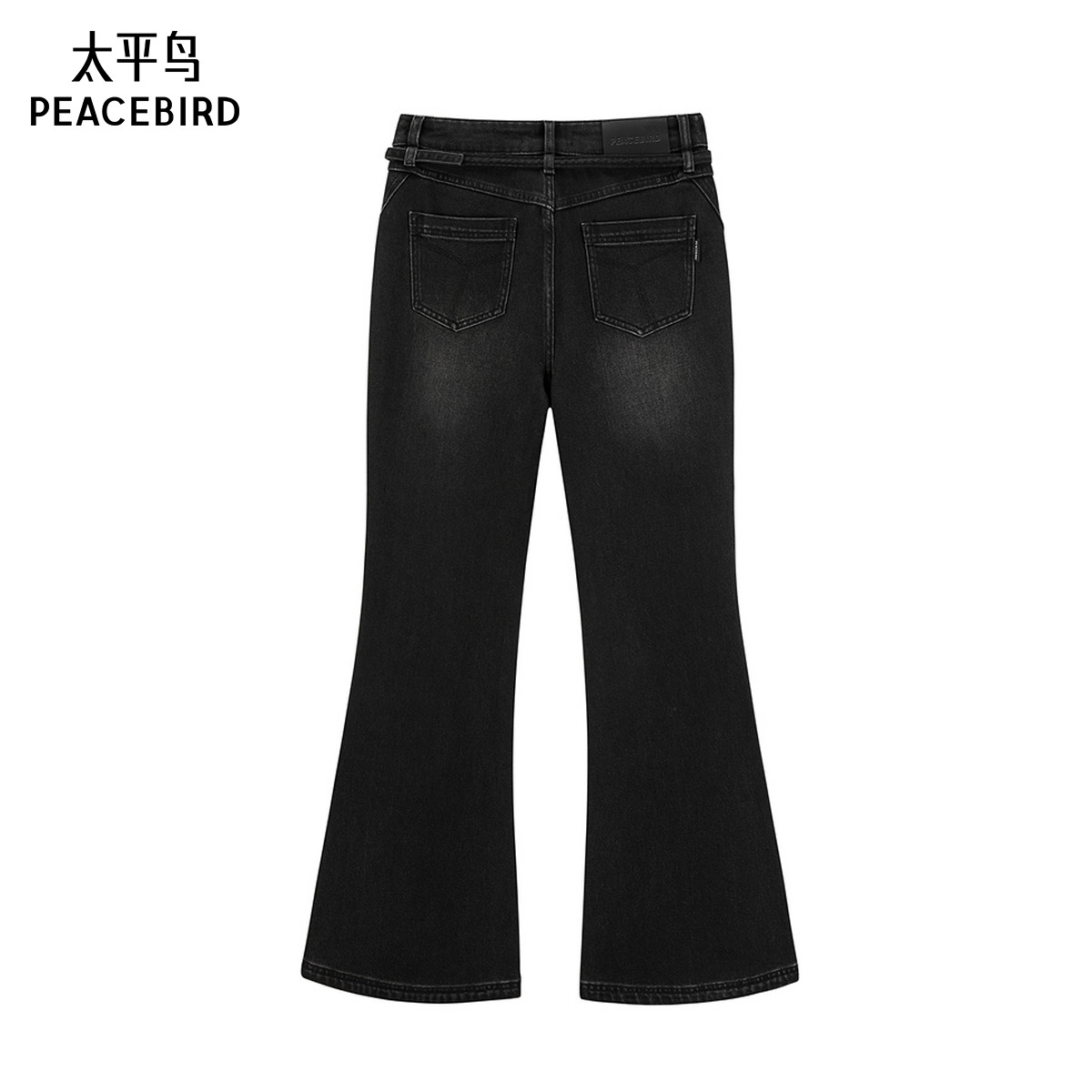 太平鸟高腰黑色喇叭裤2025年春夏新款土耳其棉牛仔裤A3HAF1265