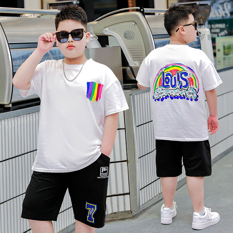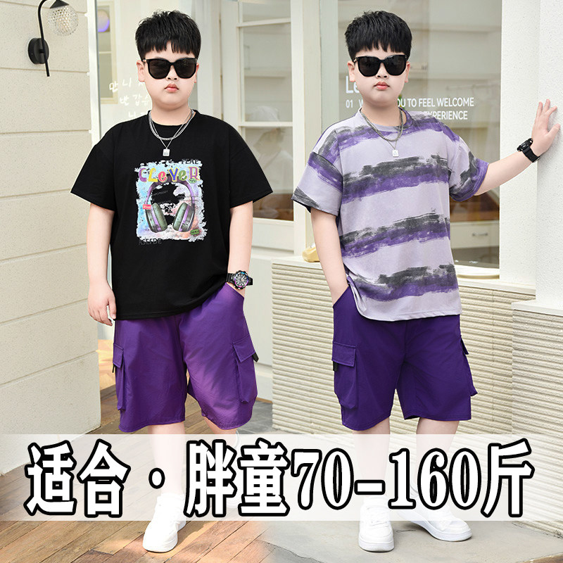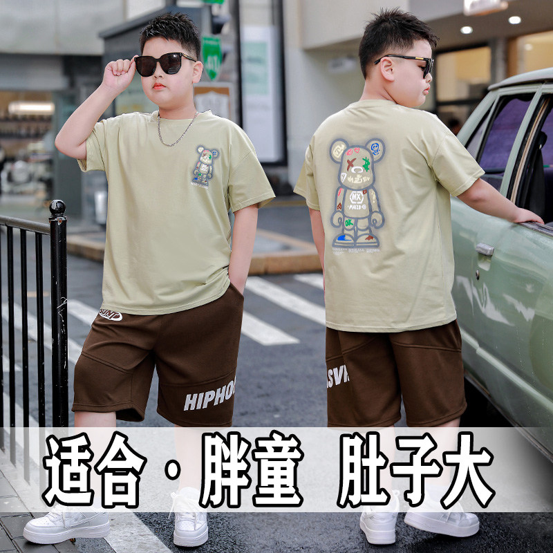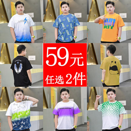 胖男童T恤加肥加大夏季运动汗衫中大童纯棉短袖宽松半袖洋气体恤