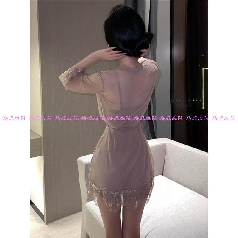 夏季性感睡衣女蕾丝吊带睡裙睡袍透明薄款大码宽松冰丝家居服套装