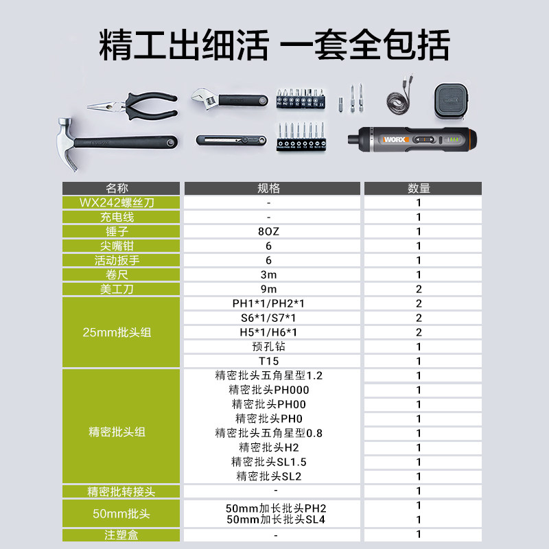 威克士电动螺丝刀手动工具套装家用小型充电式电批工具WX242.1