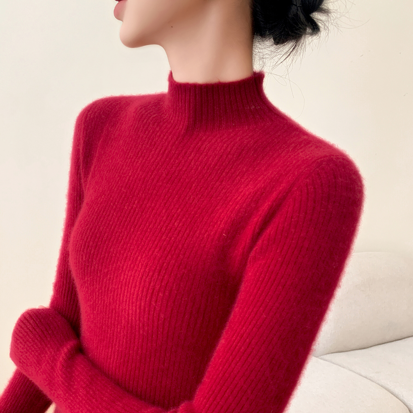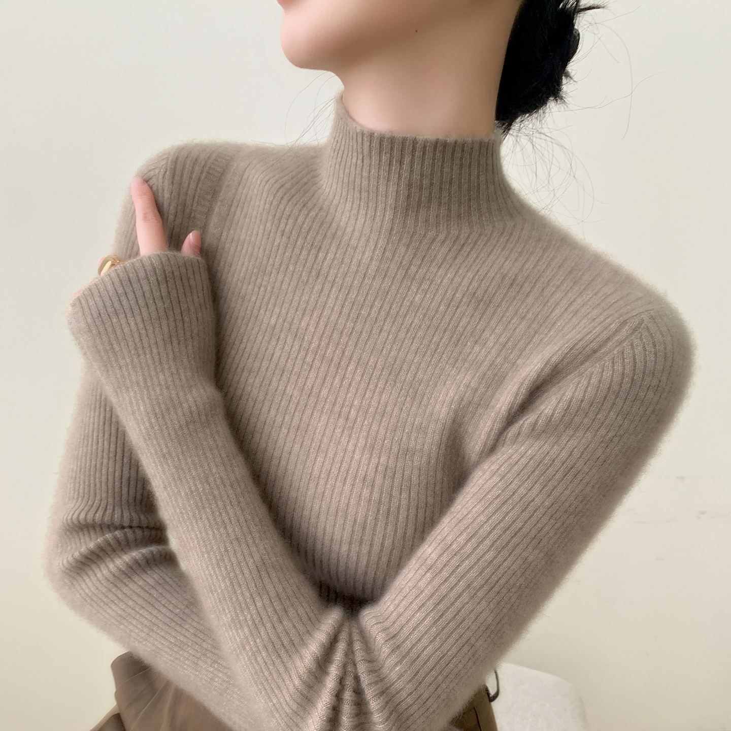 修身100%纯山羊绒衫女半高领