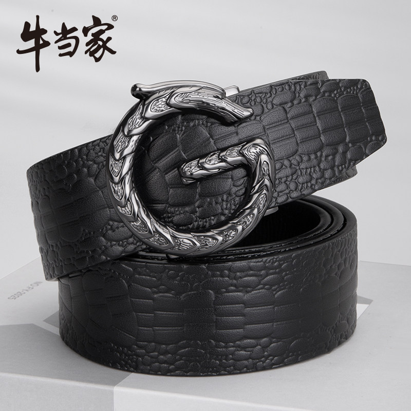 牛当家皮带男士真皮腰带自动扣头层牛皮年轻人时尚裤带男鳄鱼纹