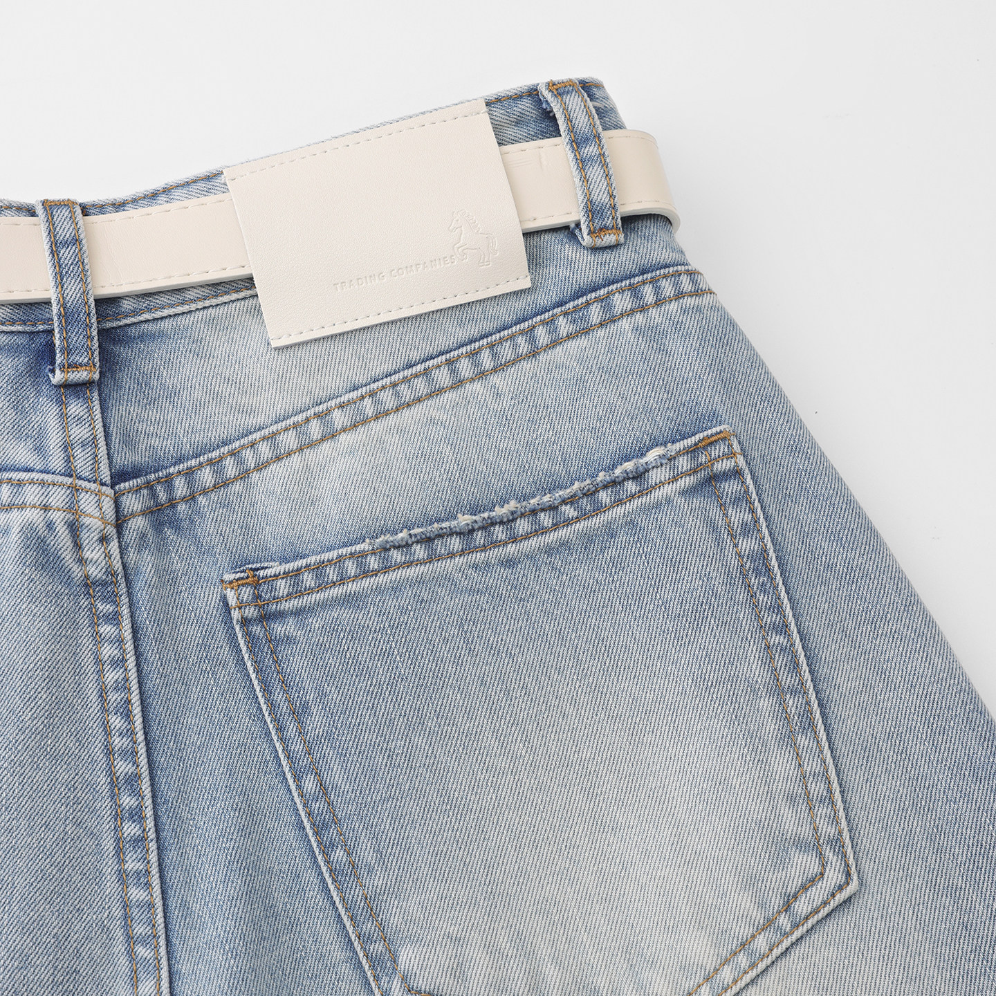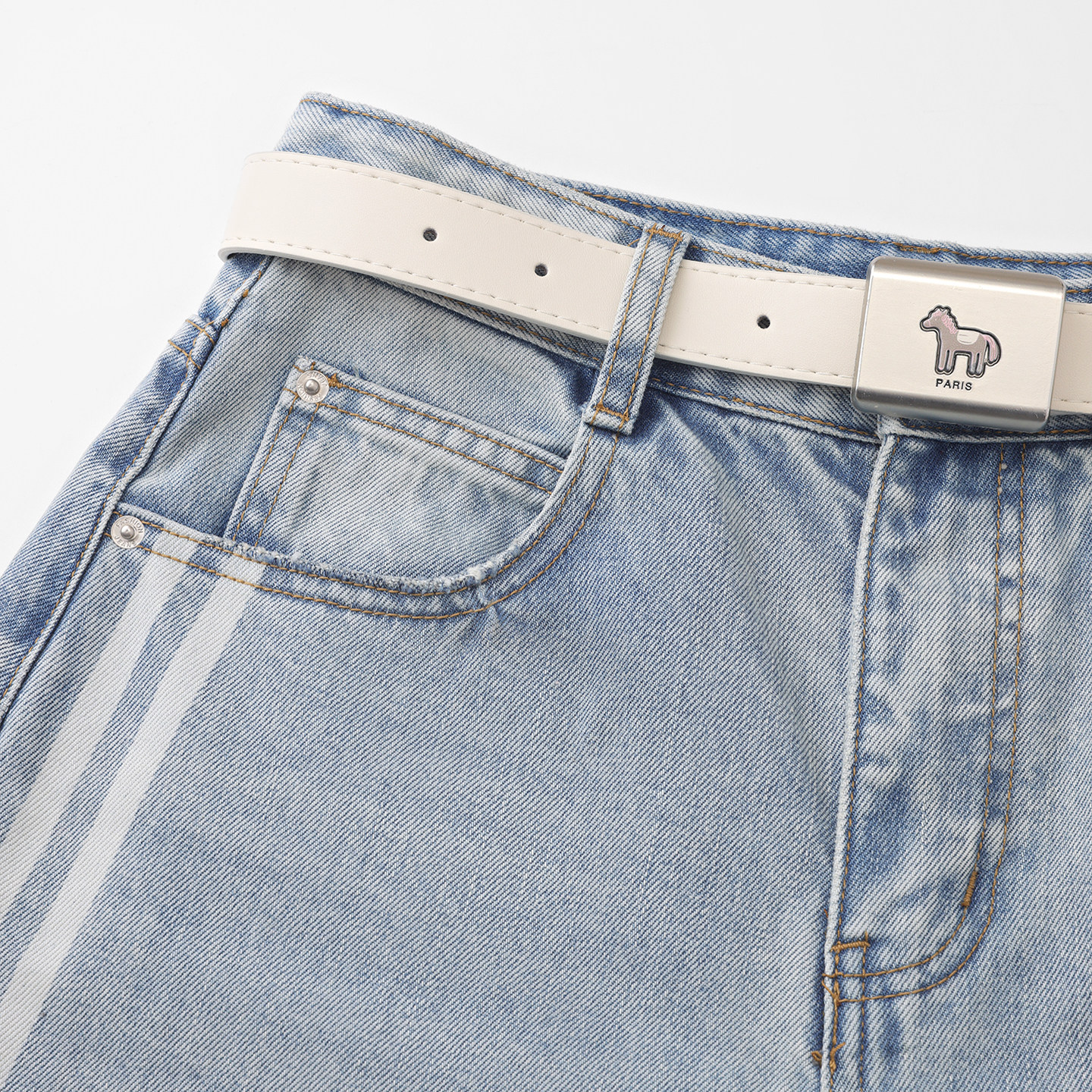 熙薇【清蓝条韵】2026春季新款线条水洗阔腿牛仔裤M2112