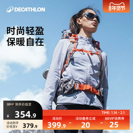 迪卡侬抓绒保暖外套女户外徒步休闲运动轻薄夹克ODF