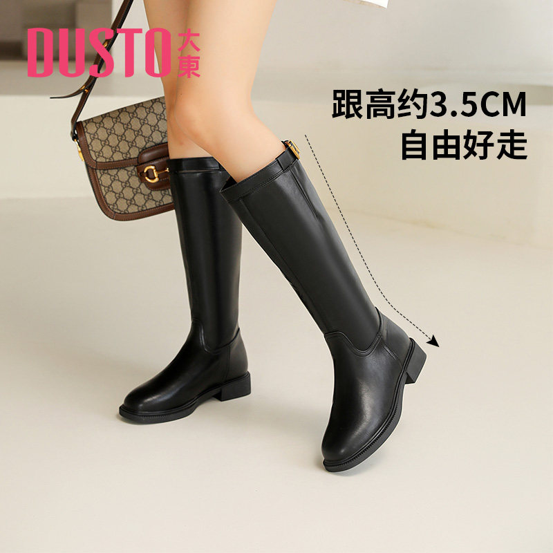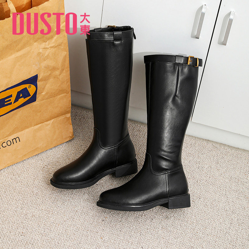 大东过膝靴女鞋冬季潮流时尚舒适简约后拉链圆头鞋0653