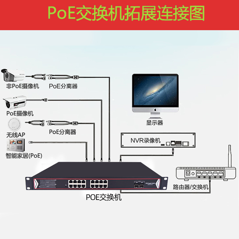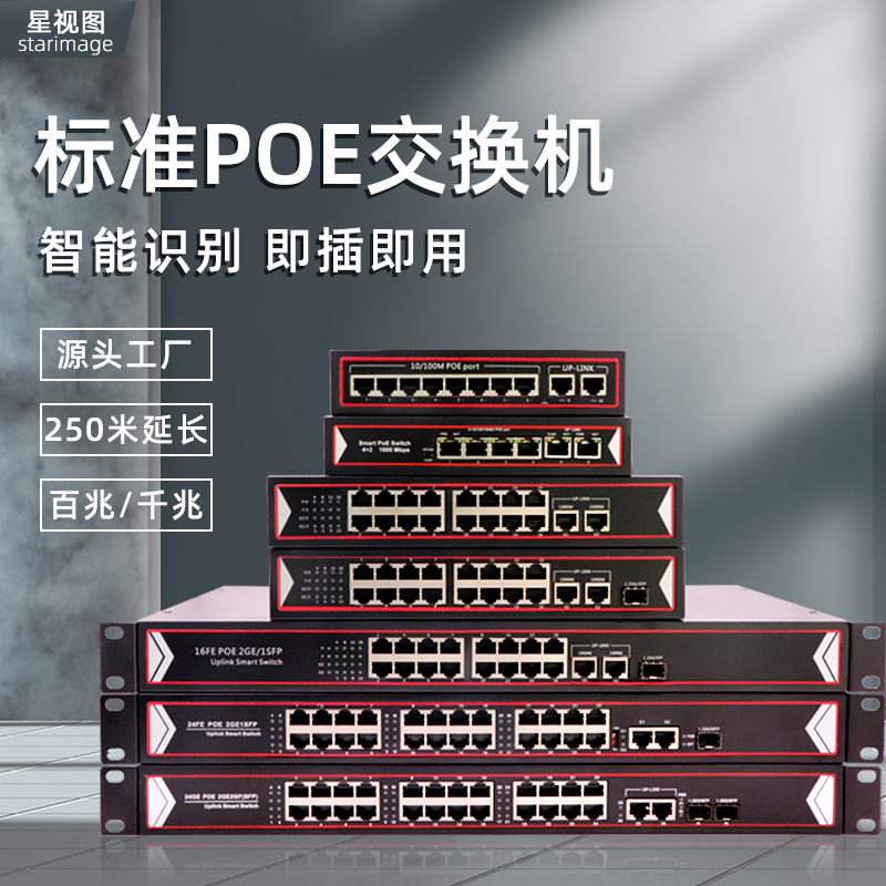 星视图安防监控标准POE交换机千兆5口8口10口16口24口百兆国标48V网线供电支持海康大华TP监控摄像头非管理型