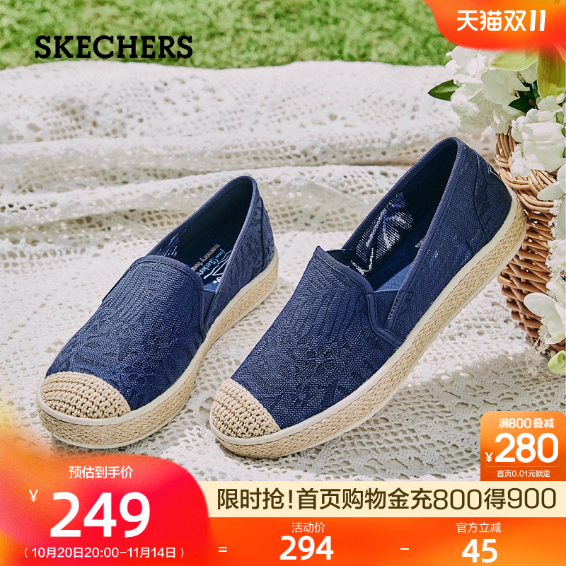 斯凯奇女鞋小香风蕾丝渔夫鞋透气一脚蹬浅口单鞋妈妈鞋软底鞋夏季