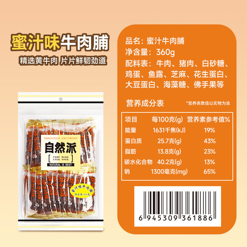 自然派牛肉脯360g单独小包装蜜汁味牛肉干休闲零食解馋特产