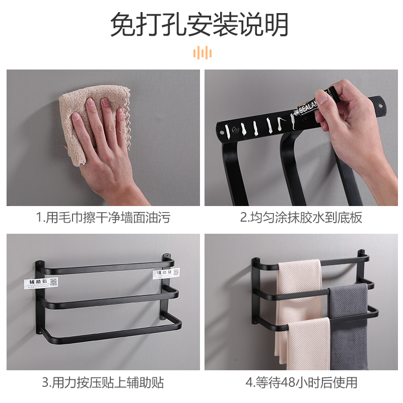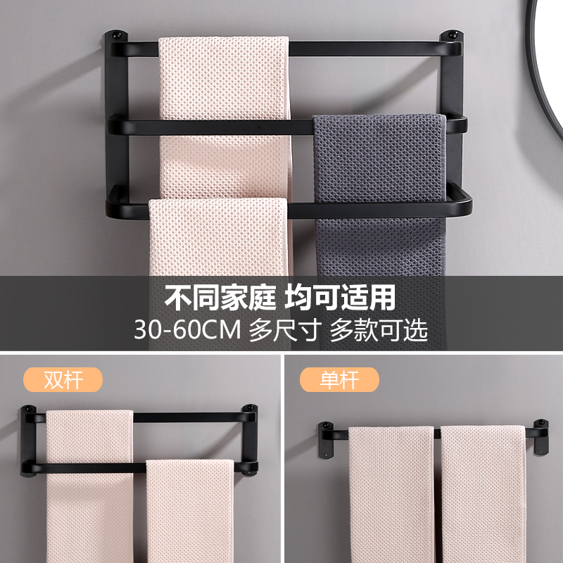 黑色免打孔单杆双三杆毛巾架浴巾架卫浴置物架浴室不锈钢挂件壁挂