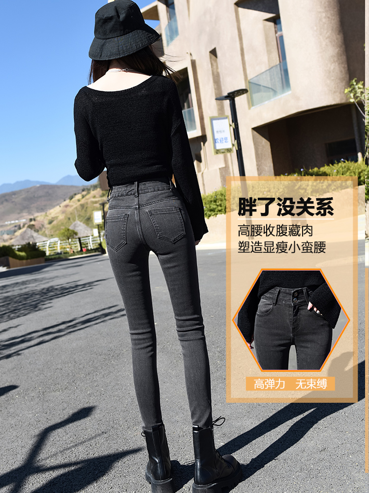 烟灰色牛仔裤女秋冬秋季高腰2025新款紧身显瘦铅笔九分小脚裤长裤