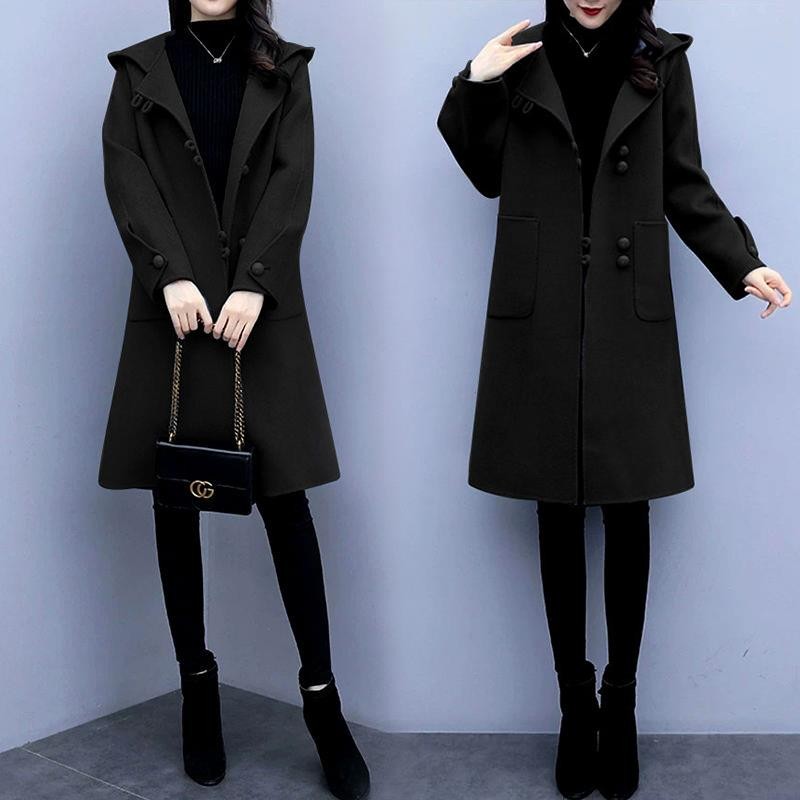 胖mm大码毛呢外套女2022新款秋冬宽松中长款连帽复古呢子大衣风衣