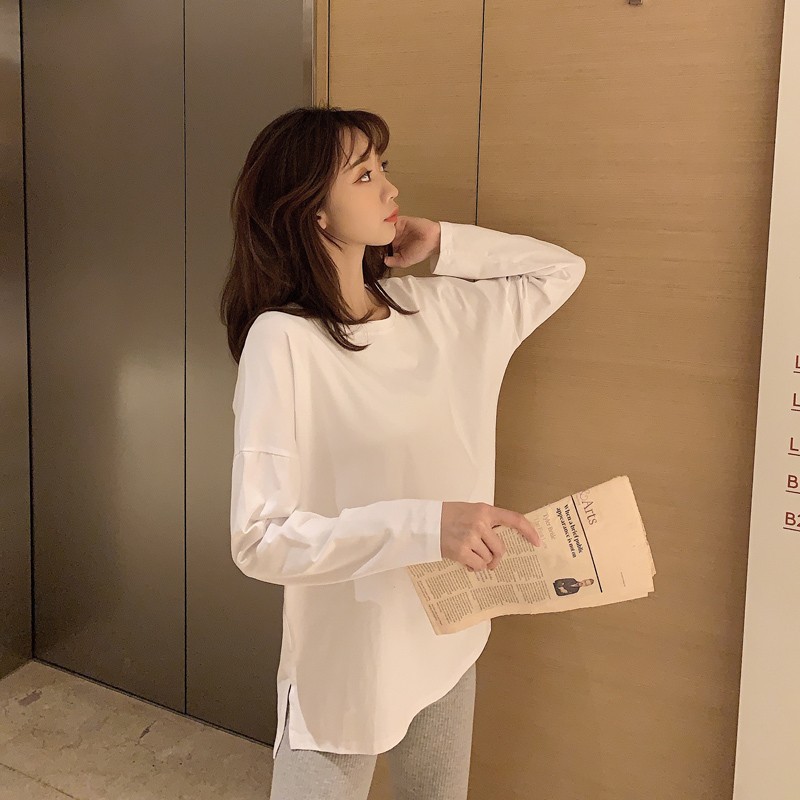 纯白色长袖t恤女打底衫纯棉宽松卫衣内搭上衣纯色打底衣春秋白体