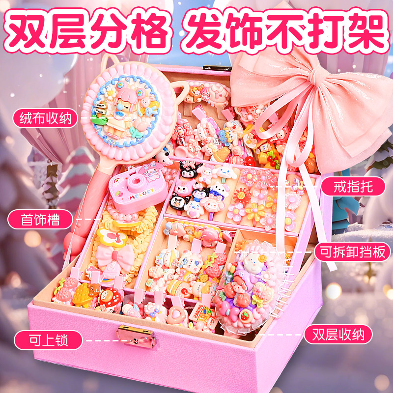 儿童发饰礼盒女孩的生日礼物女童发夹手工diy材料奶油胶咕卡套装
