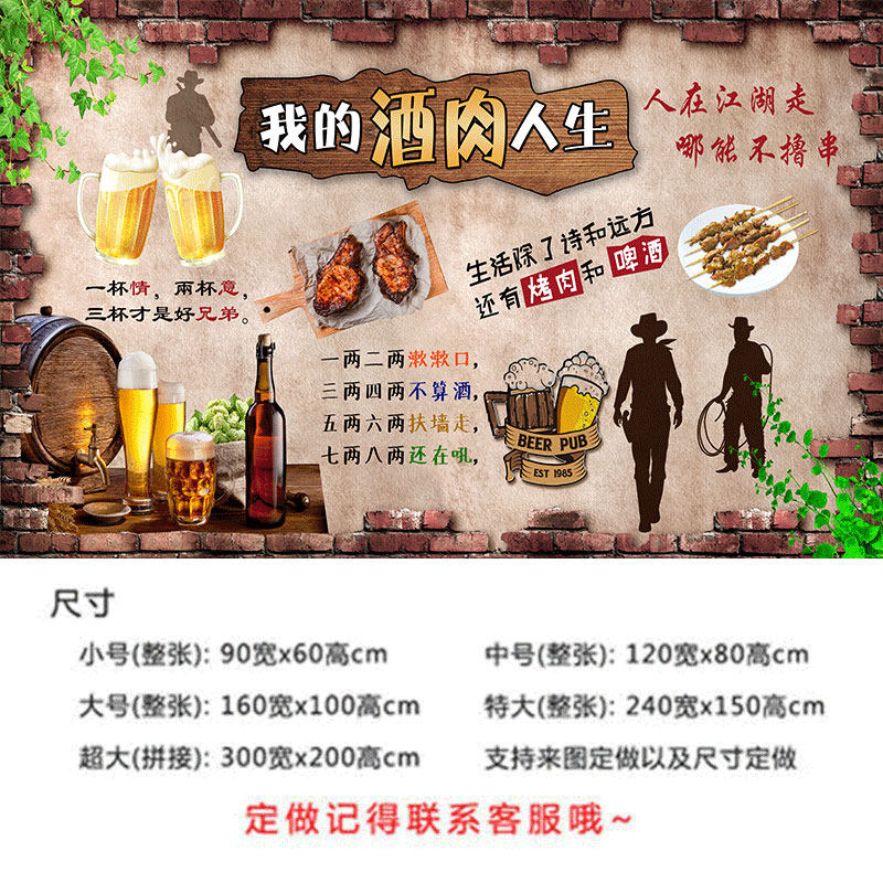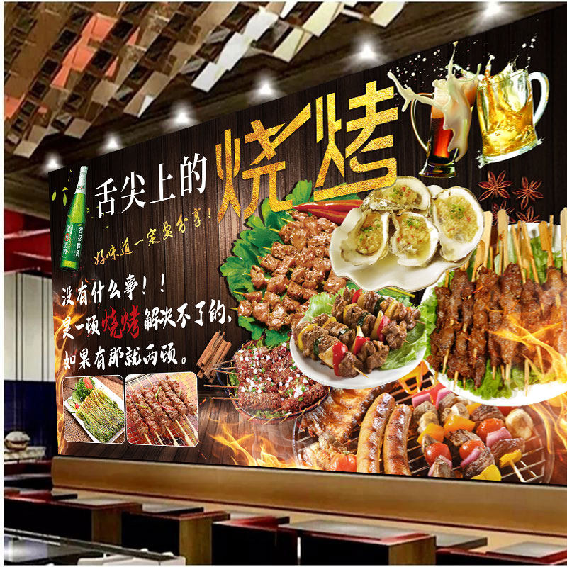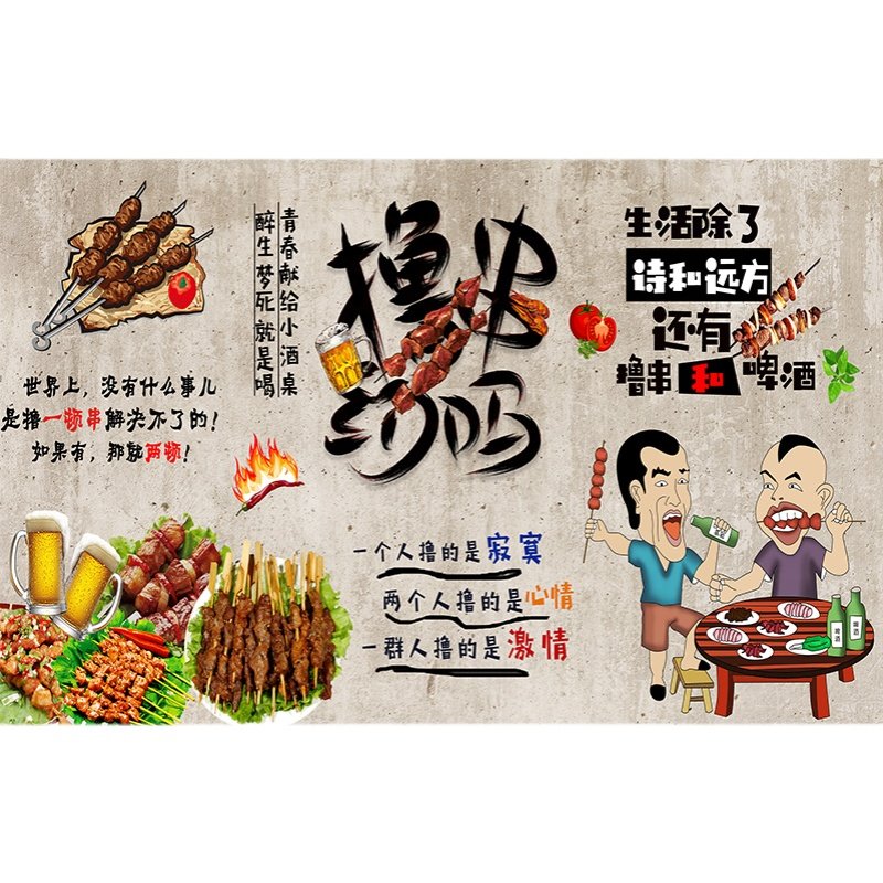 烧烤店自粘海报贴纸饭店大排档搞笑撸串装饰墙贴防水壁纸餐厅贴画
