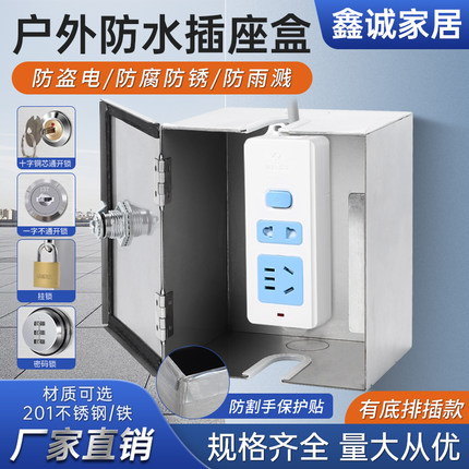 充电器防盗盒电动车室户外排插带锁电插座保护盒防水雨插线板大号