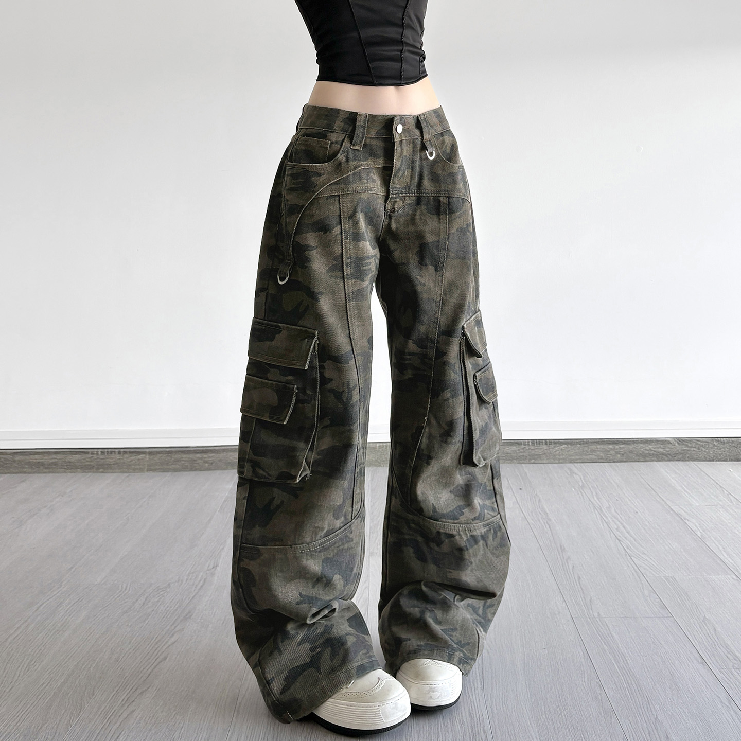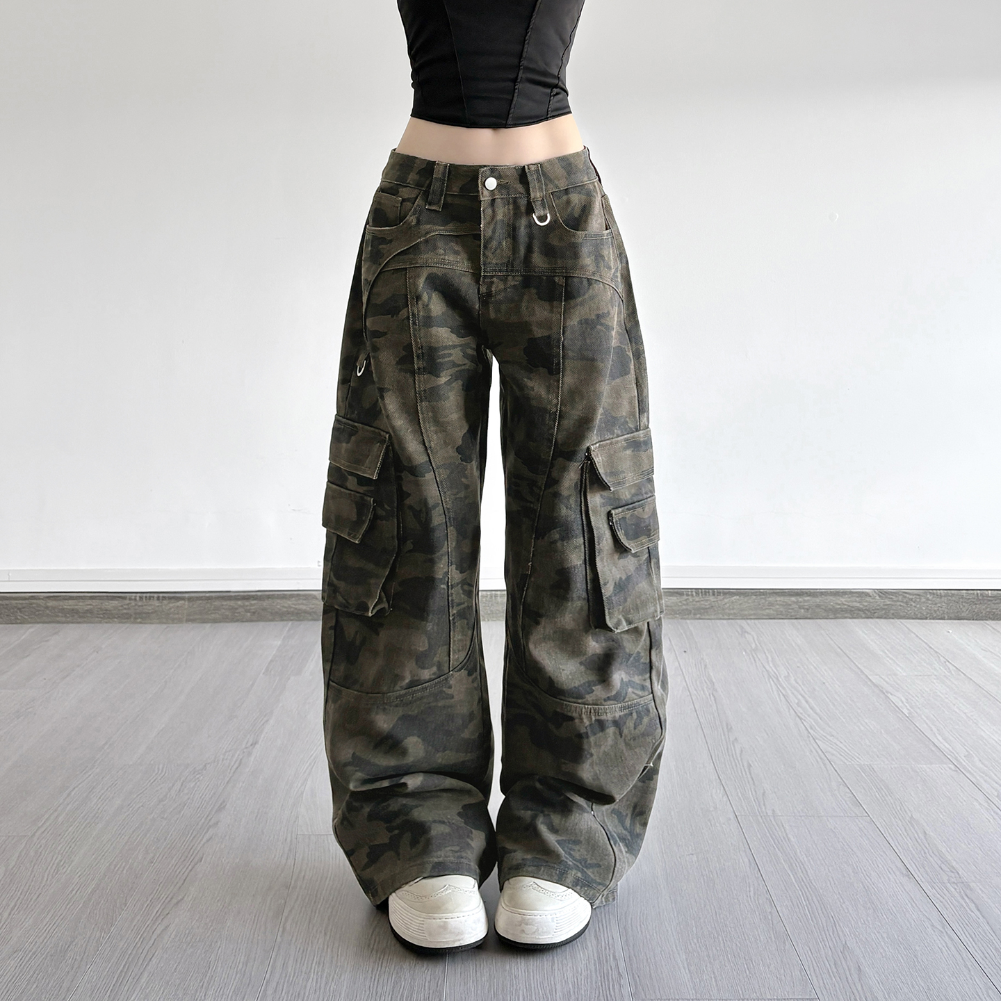 FabGirls 军旅风立体口袋拼接迷彩低腰牛仔裤 小众百搭显瘦工装裤