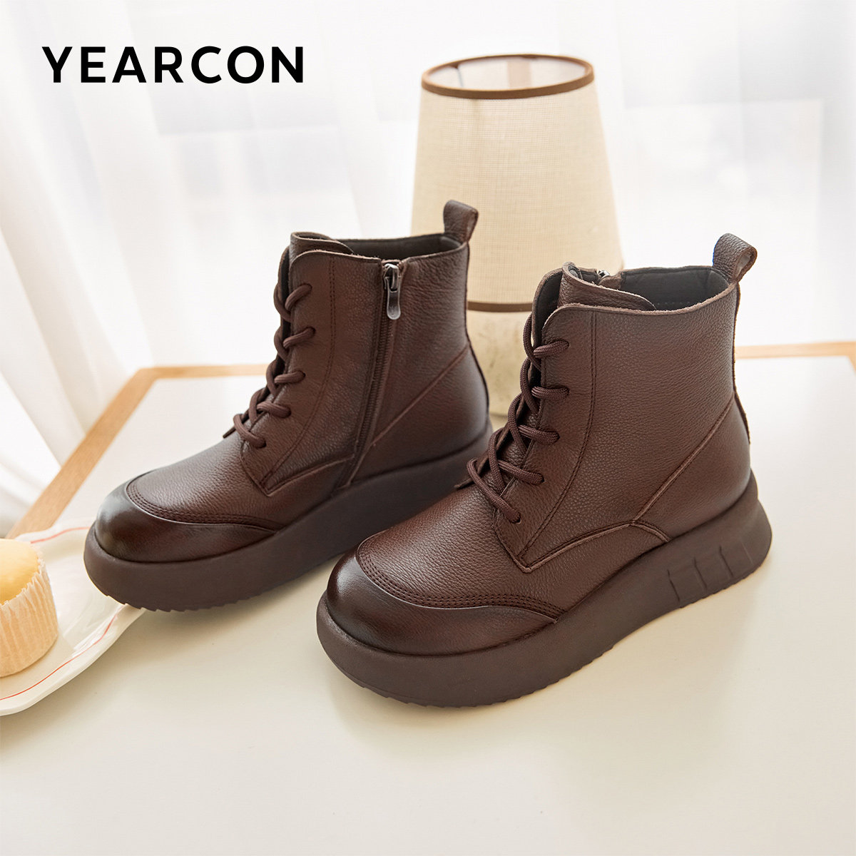 意尔康女靴2025新款冬季真皮马丁靴女加绒短靴保暖妈妈棉鞋短筒靴