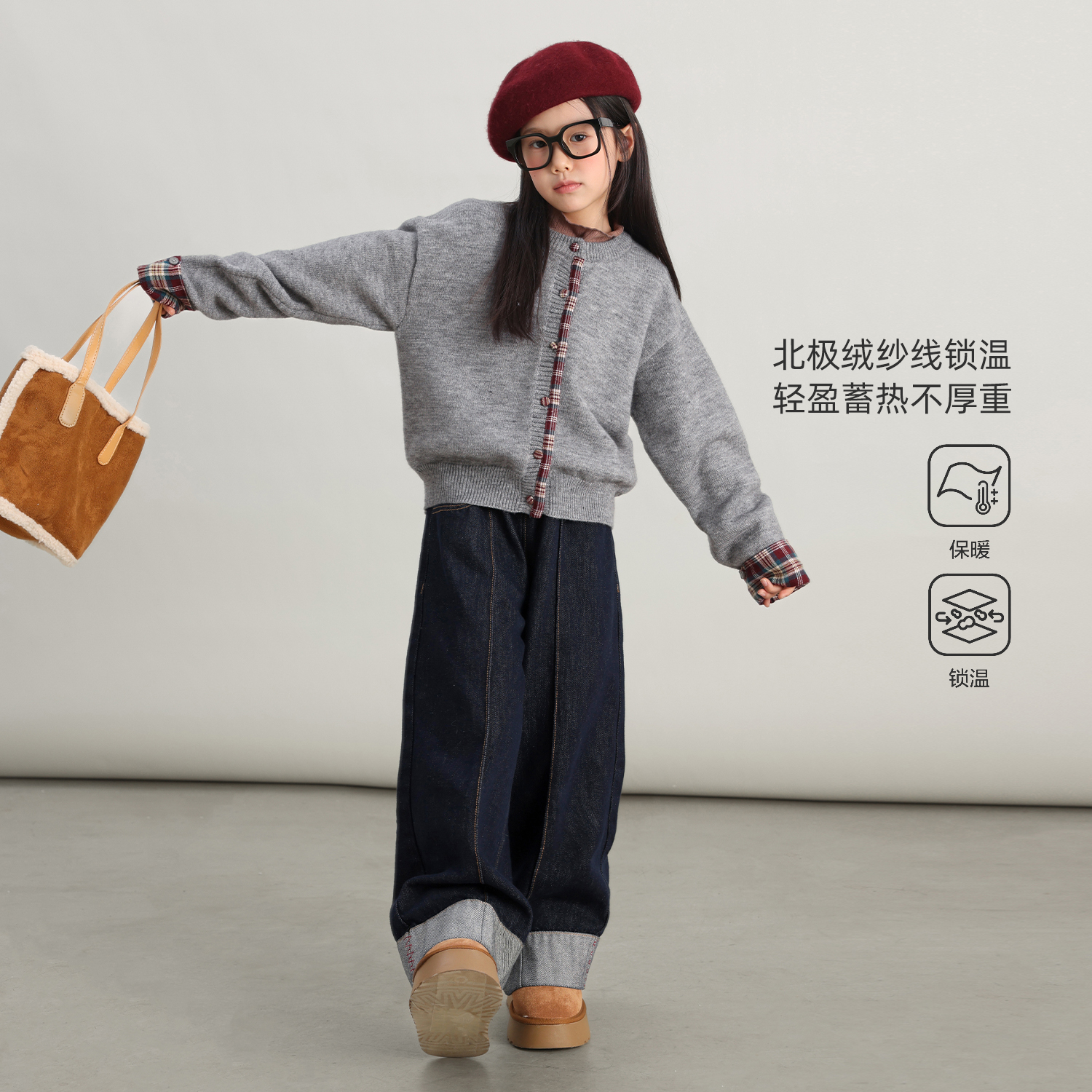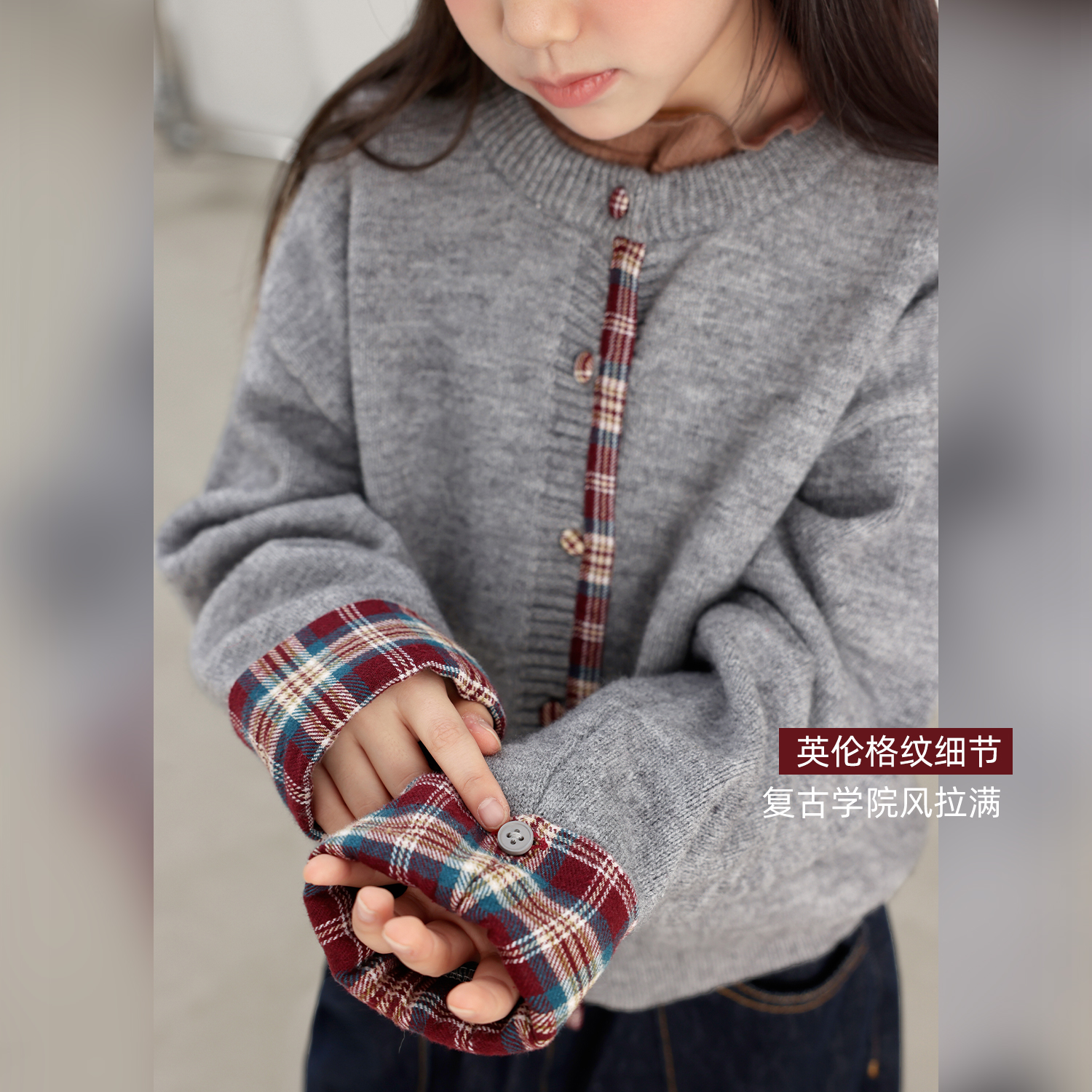 NORNOR陈大猪童装女童开衫秋季洋气薄款女大童毛衣儿童针织衫外套