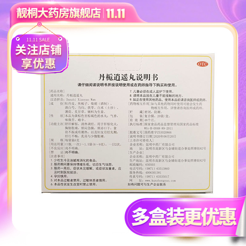 [昆中药]丹栀逍遥丸6g*20袋/盒