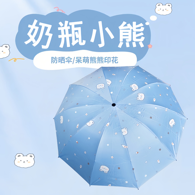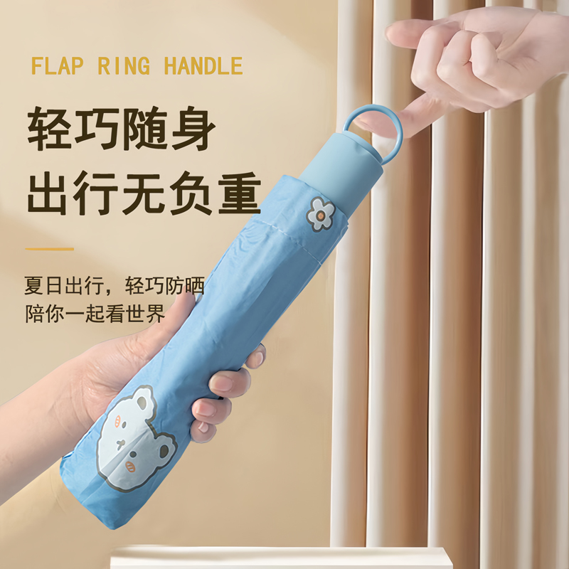 雨众可爱卡通学生大号雨伞女手动折叠晴雨两用黑胶防晒遮阳太阳伞