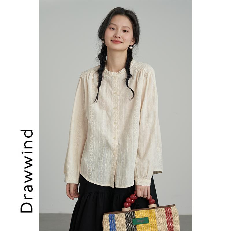 画风drawwind早秋新款荷叶边衬衫女宽松显瘦气质百搭立领长袖上衣