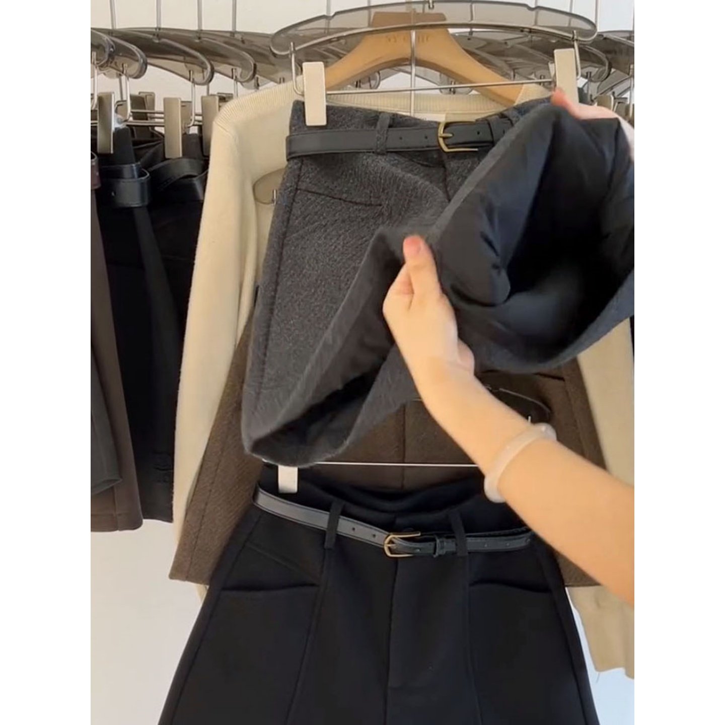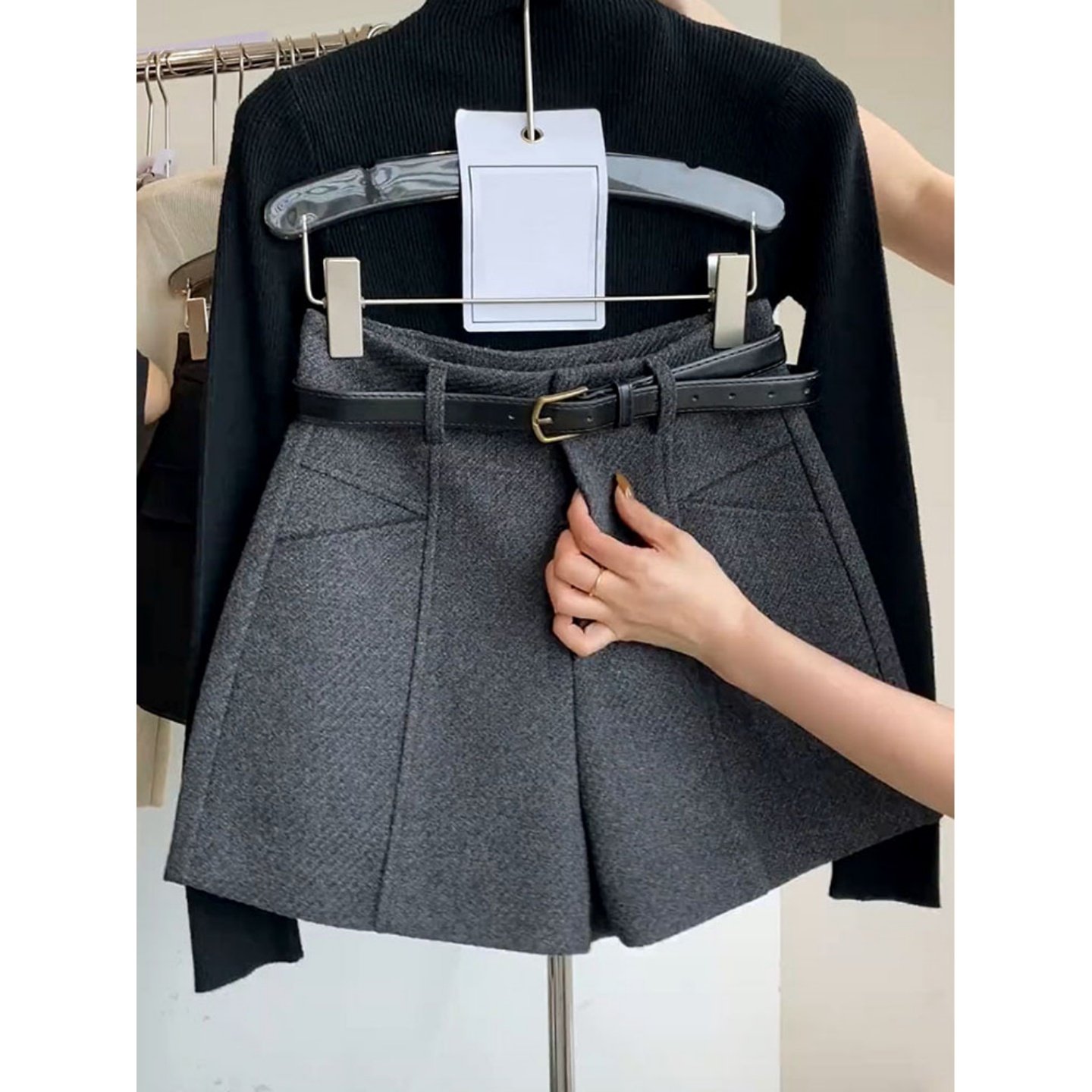 2025冬毛呢短裤短款阔腿高腰靴裤