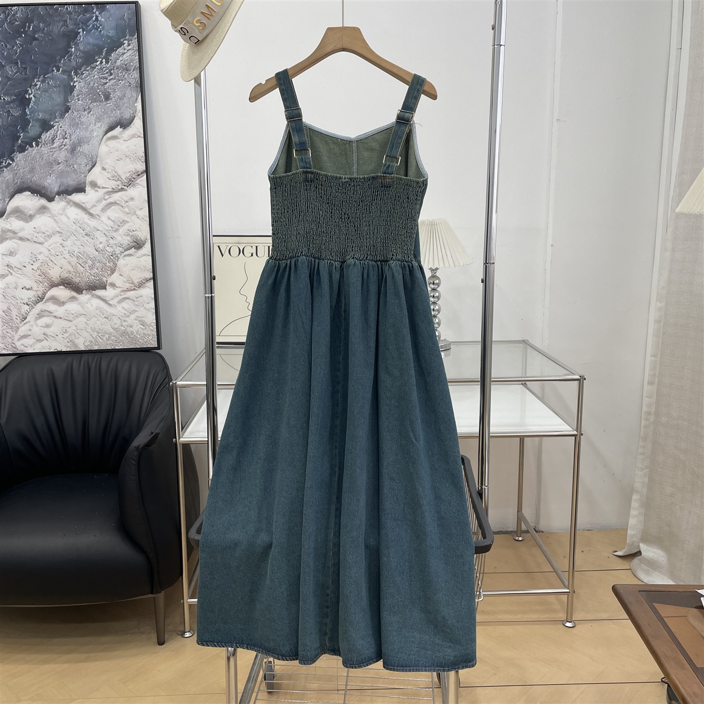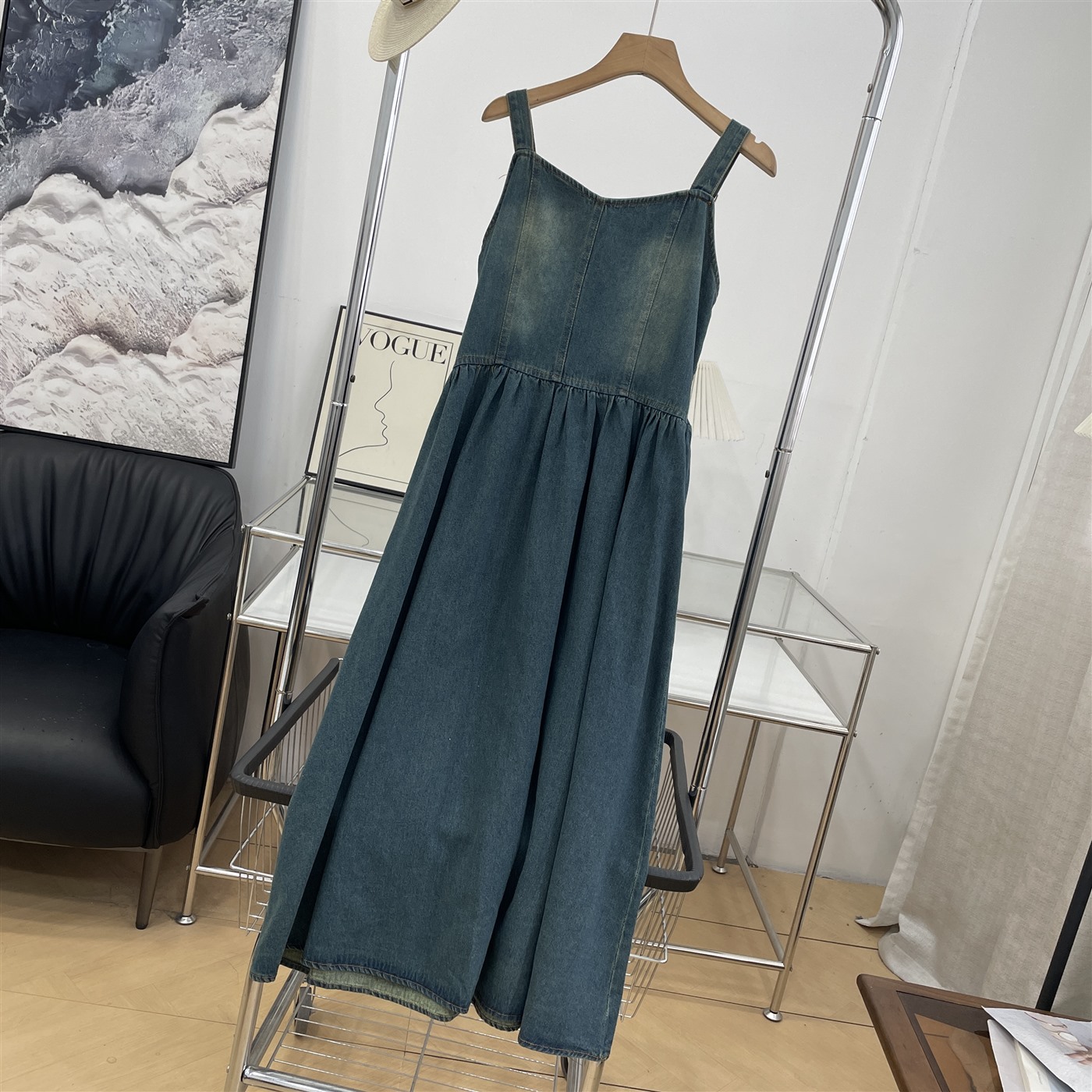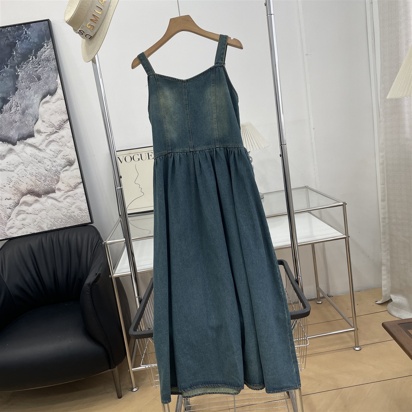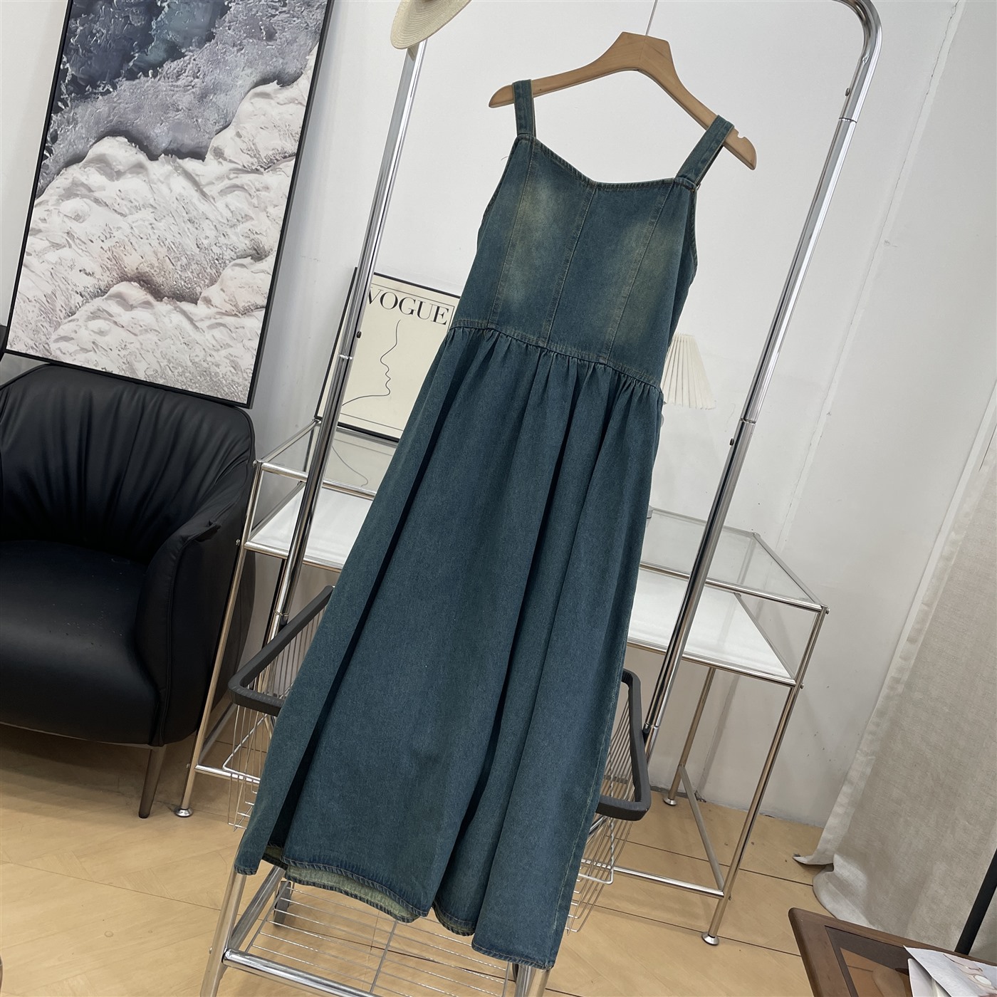 牛仔背带裙宽松早秋显瘦简约高腰纯色休闲四季百搭长裙 H#22