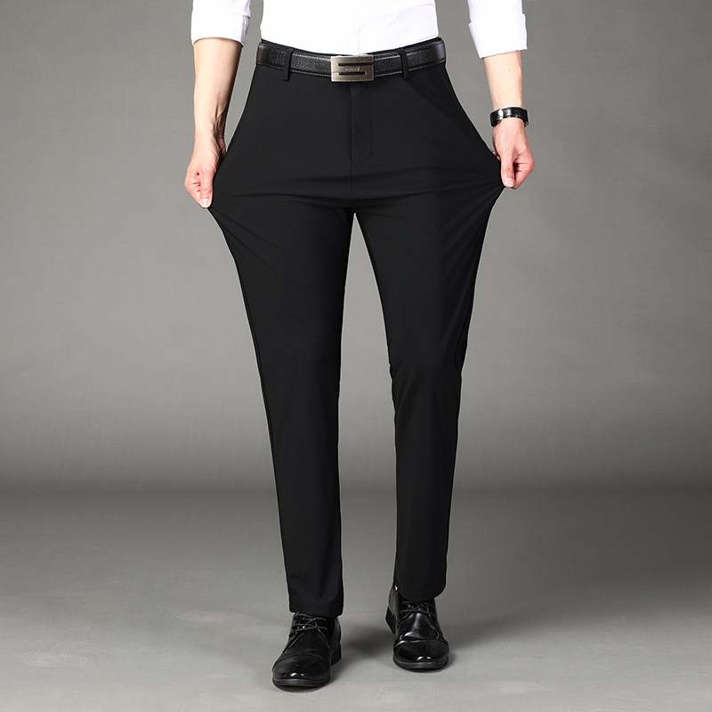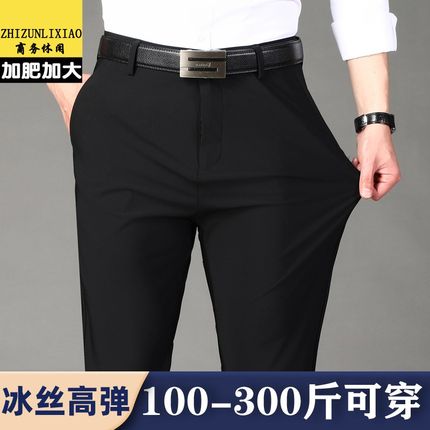 高弹冰丝薄款裤子男士中年商务休闲裤加肥加大码宽松胖子免烫西裤