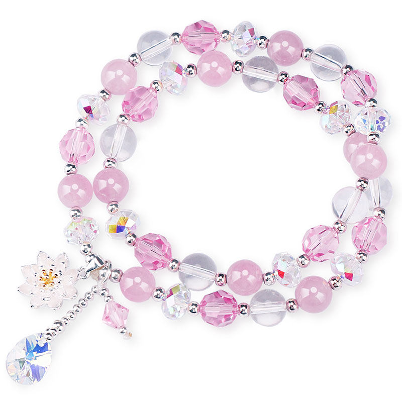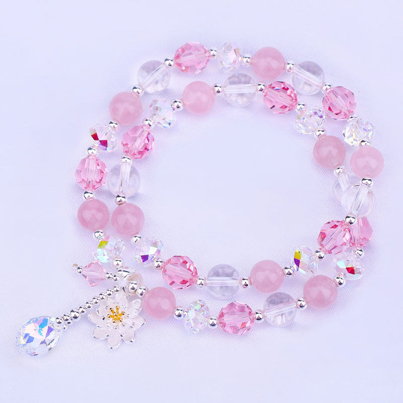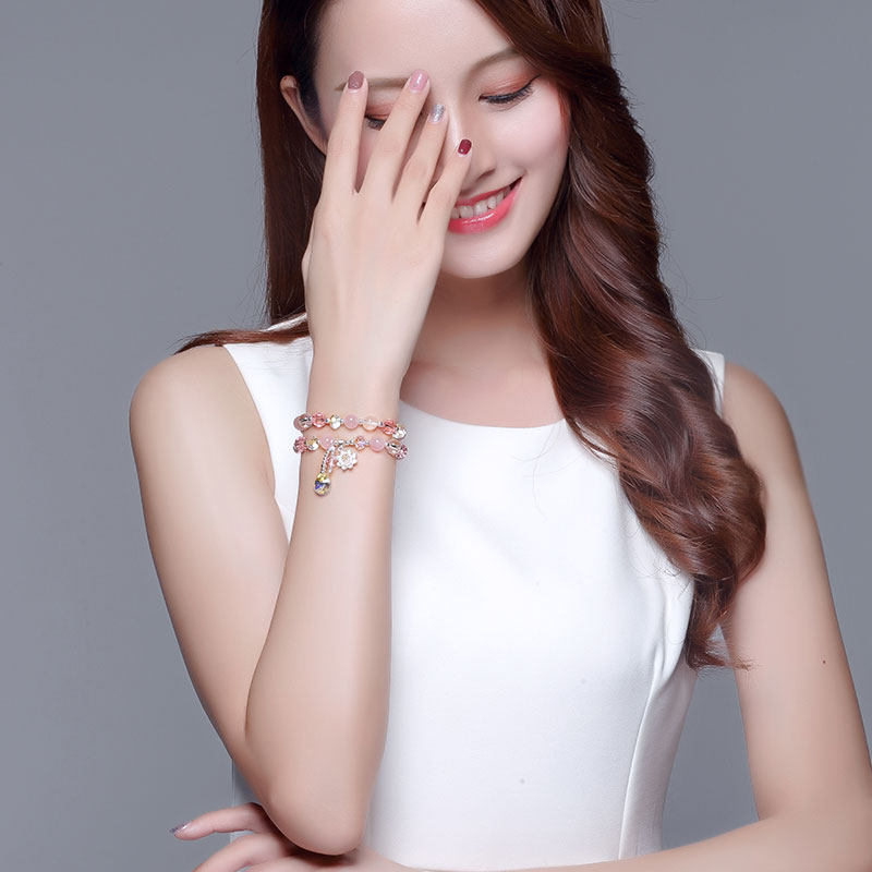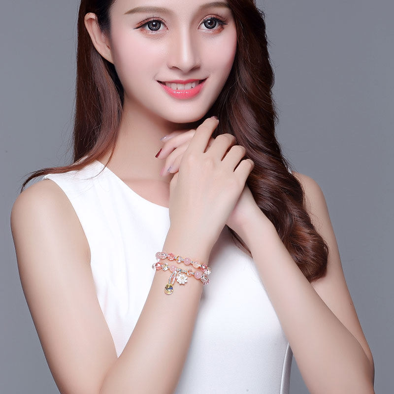 粉水晶手链女手串粉色珠子纯银转运招桃花串珠夏2021年新款高级感
