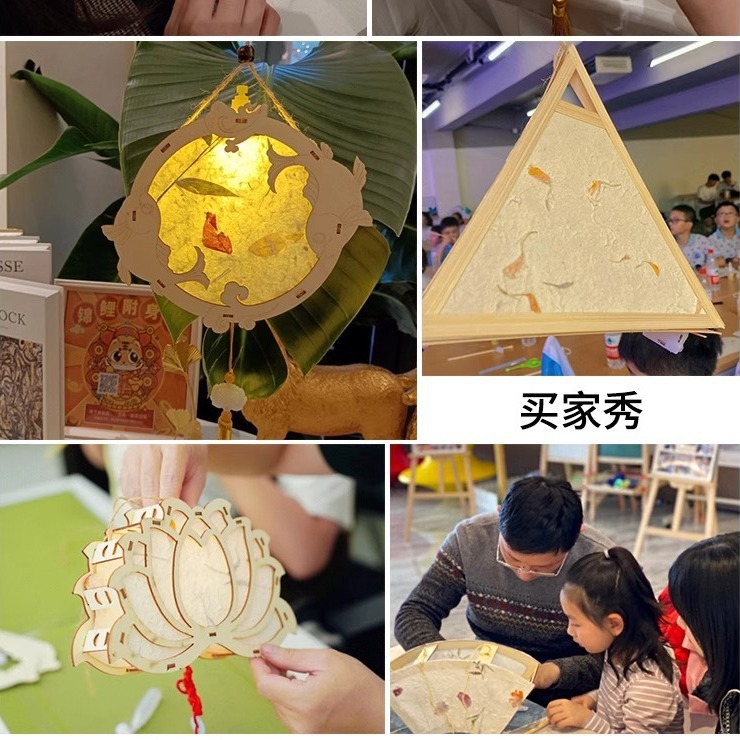 中秋节花草纸灯笼木质框架手工diy材料包手提古风宫灯发光玩具