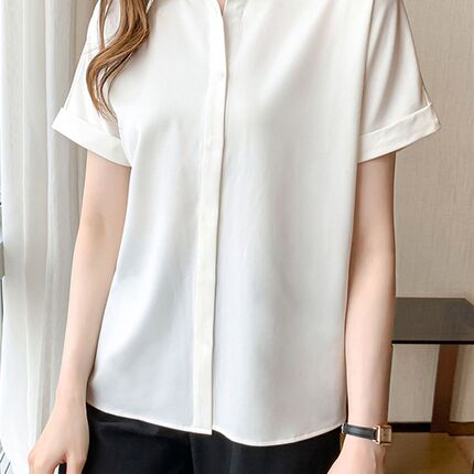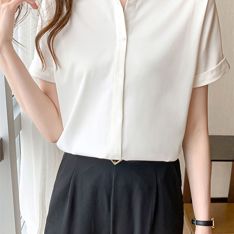 夏季新款雪纺白衬衫女短袖基础款外搭抗皱垂感衬衣高级感衬衣职业