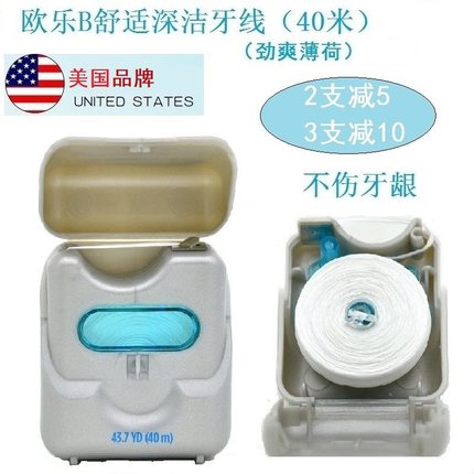 欧乐b舒适深洁牙线40米 oralb宽扁形劲爽薄荷牙缝线吉列去牙菌斑