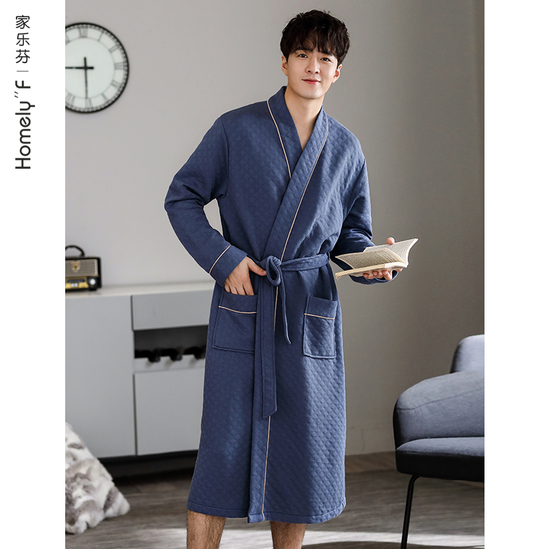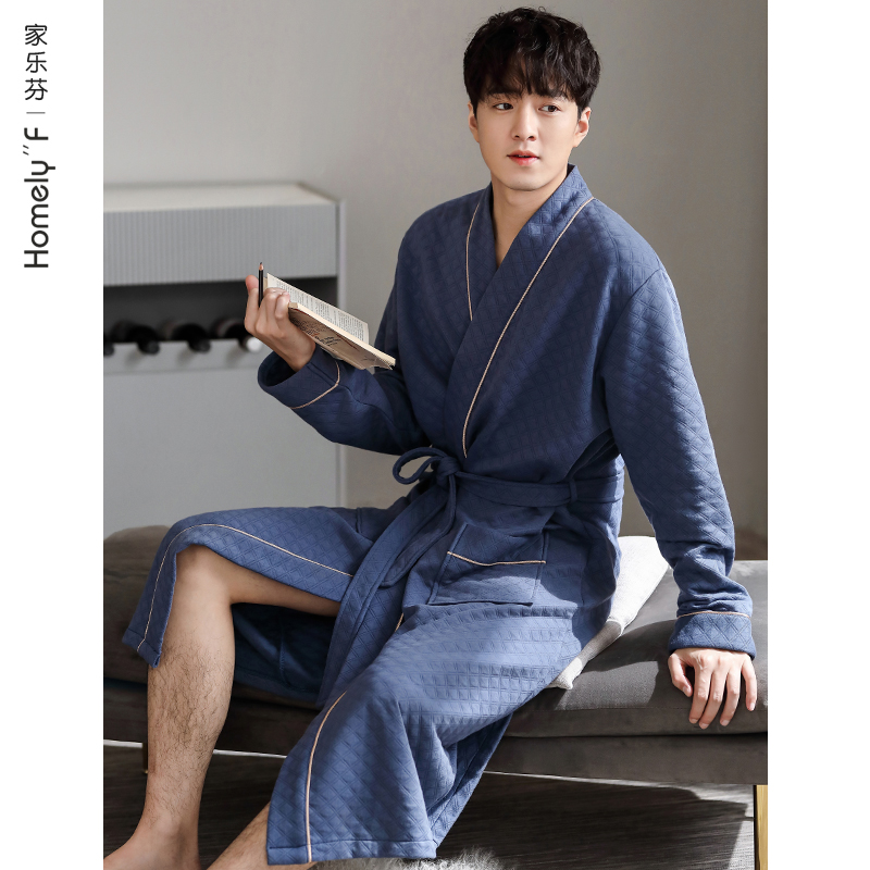 睡袍男士睡衣春秋季加厚纯棉长袖秋冬款薄款夹棉浴袍浴衣长款