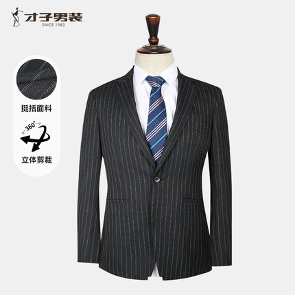 才子男装竖条纹休闲西服男2024秋季新款修身提花商务品牌西装外套