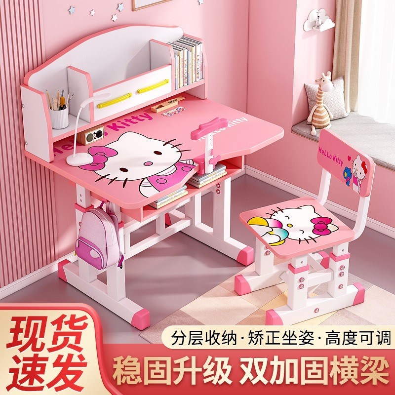 儿童学习桌可升降儿童书桌书架一体桌卡通写字桌中小学生学习桌椅