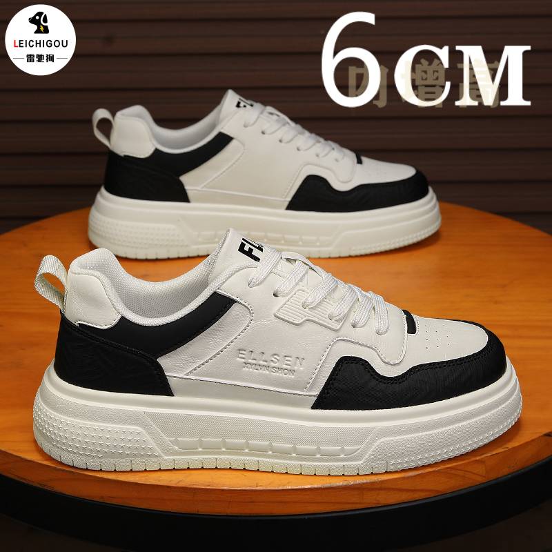 黑白熊猫板鞋男隐形内增高男鞋10cm秋季新款户外百搭休闲运动潮鞋
